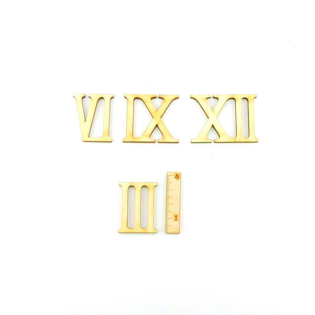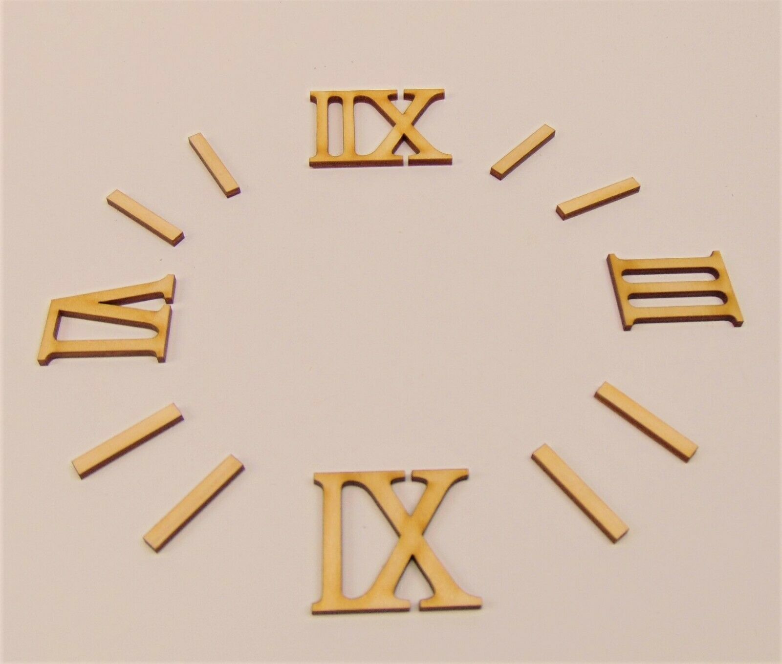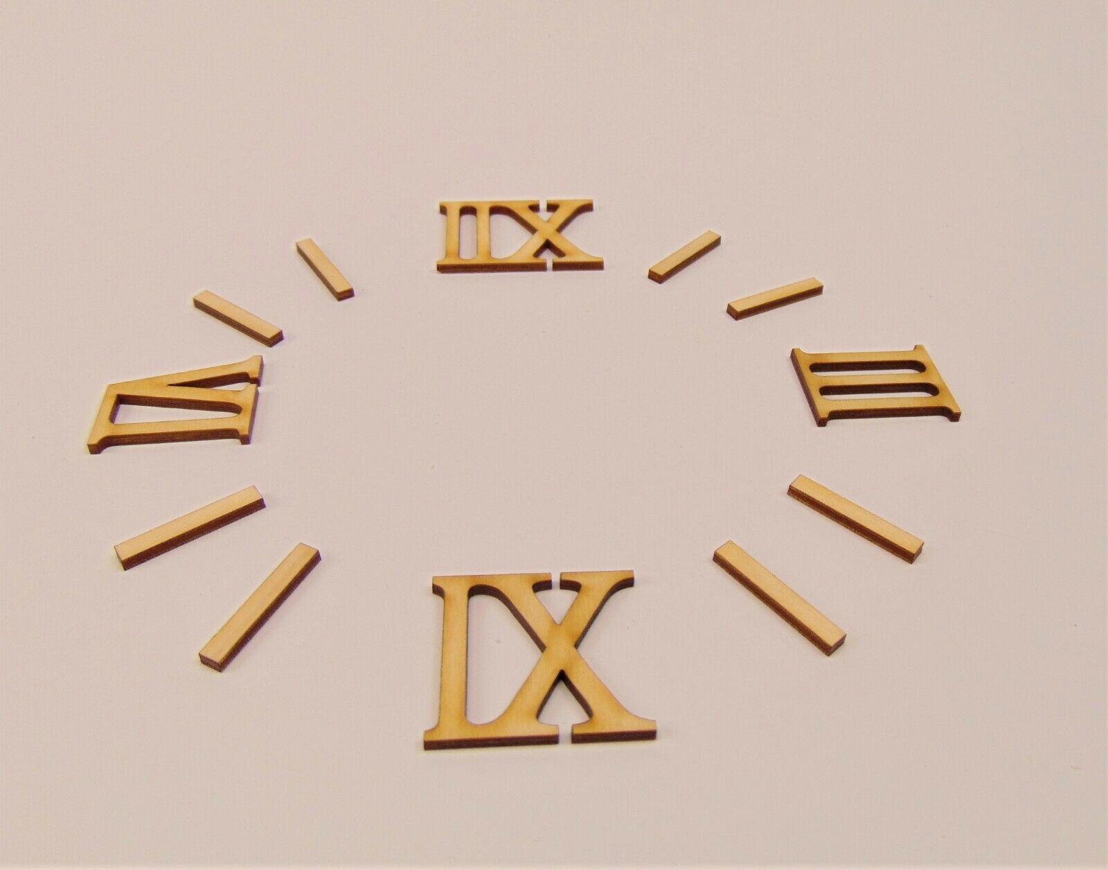 Römische Zahlen 3 6 9 12 mit Striche Holz 35 mm Höhe für Uhr basteln, Deko