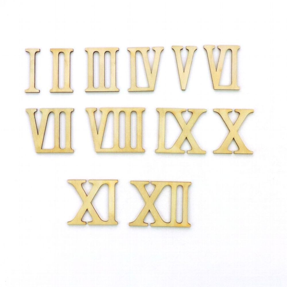 Römische Zahlen aus Holz 1-12 für eine Uhr 60 mm Höhe Basteln Deko