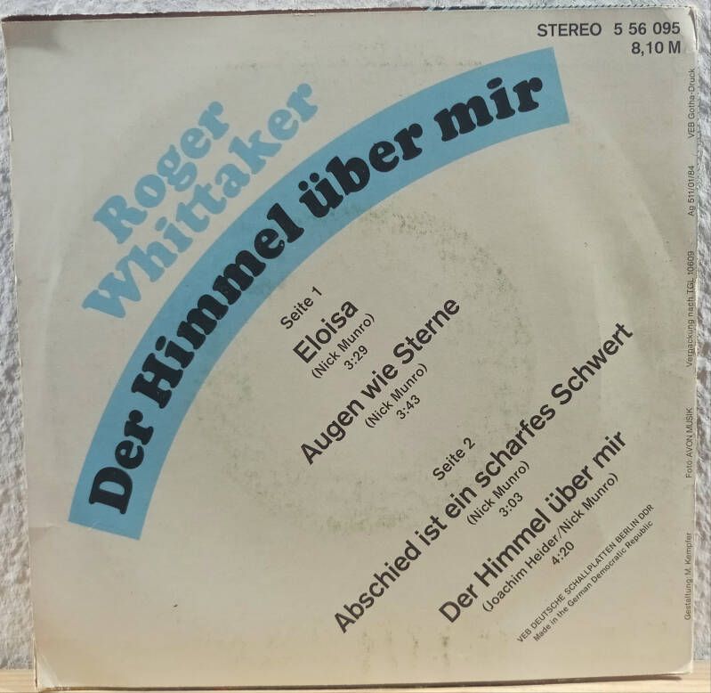 Roger Whittaker - Der Himmel brennt über mir Amiga Quartett 5 56 095 Hersteller EU Verantwortliche Person Lieferzeit 3 - 6 Tage