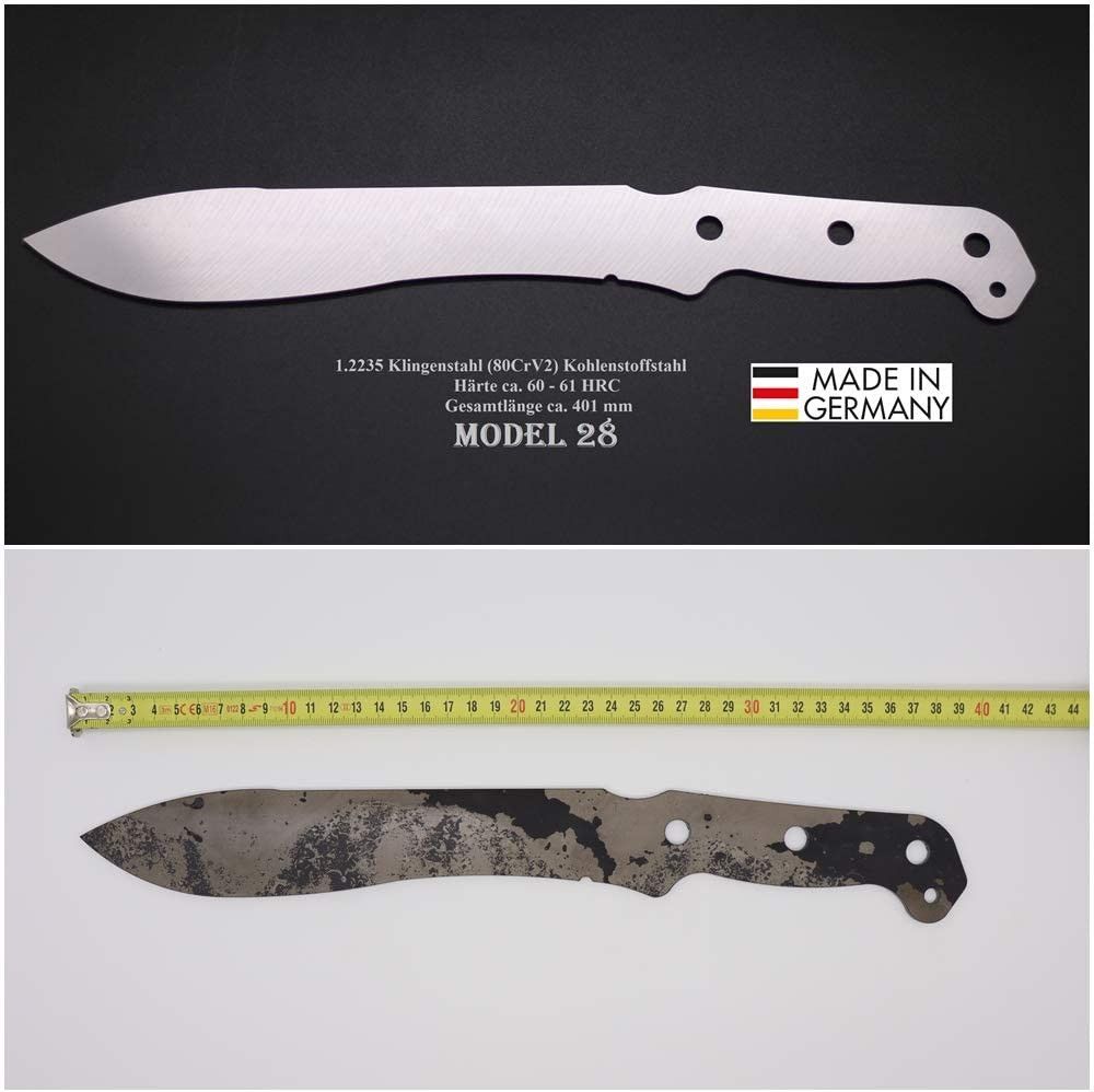 Rohling Messer Model 28 / 401mm Poliert Messerbau Messerstahl Jagdmesser