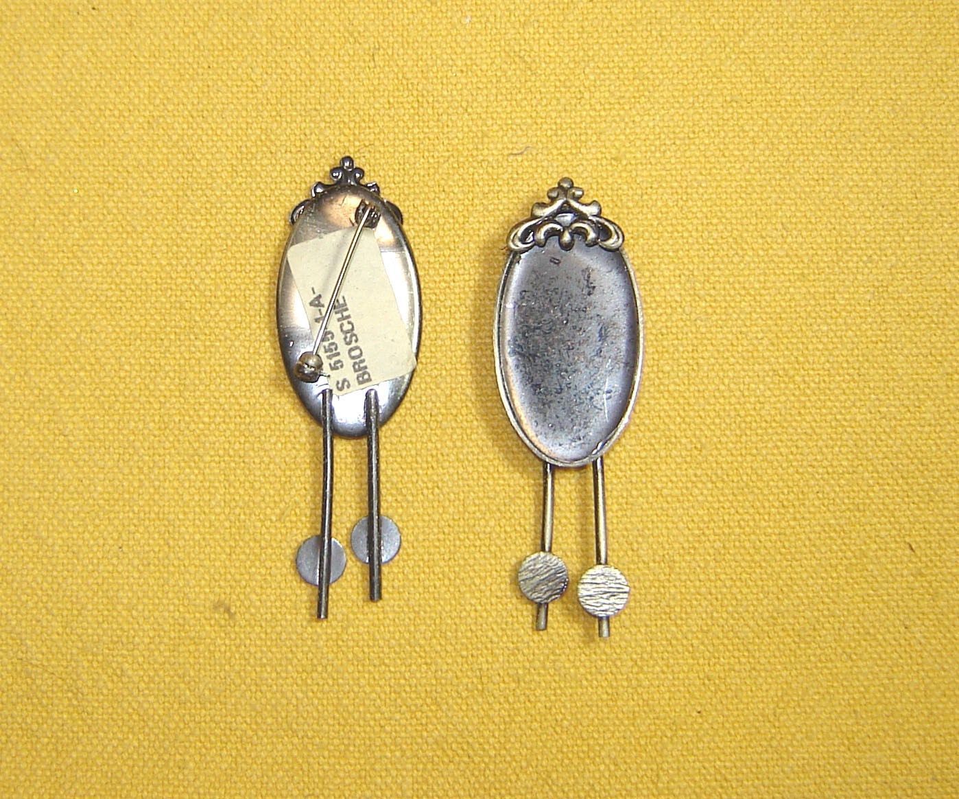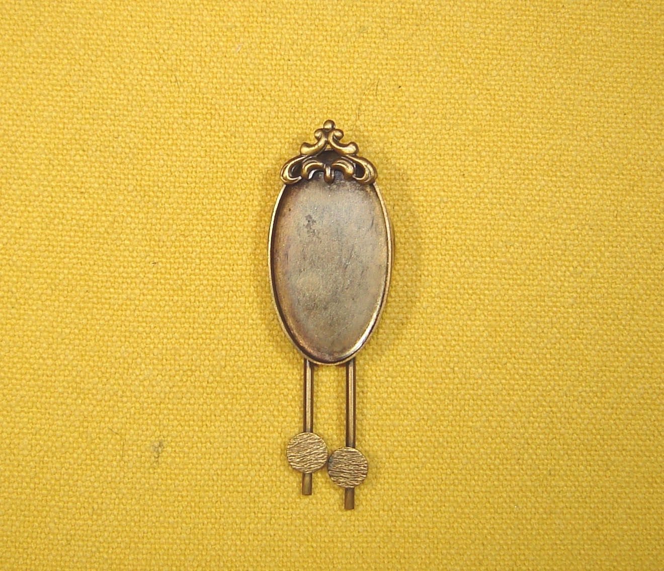 . Vintage Brosche Rohling d.h man hat mittig einen Platz um etwas anzubringen , Steine emaill usw Größe ca 8 x 2,4 cm aus Metall in Farbe altsilber oder altmessing ausgezeichnet verarbeitet , aus deutscher Herstellung Auflösung einer kleinen alten Schmuckfabrik . Bitte Sehen Sie sich hier alle meine