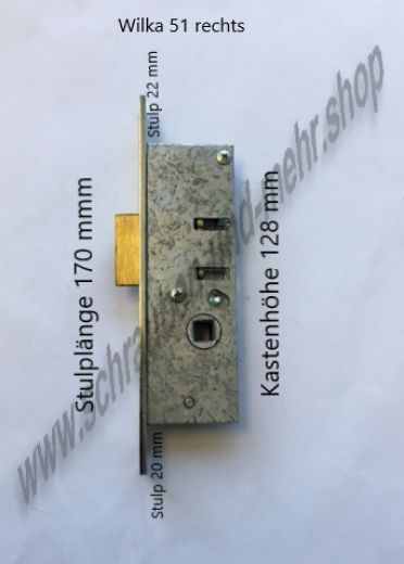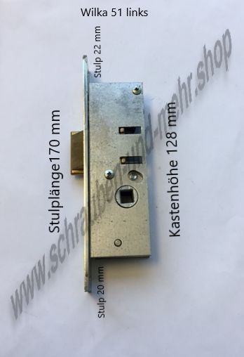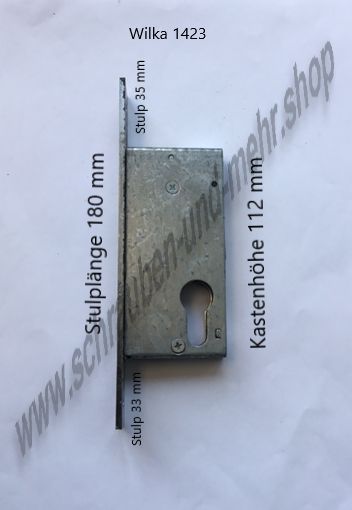 Rohrrahmen Rahmentür Stahltür Einsteckschloß Wilka 51 Drücker Fallenschloß Ausführung links oder rechts Stulplänge 170 mm, Stulpbreite 24 mm, Kastenhöhe 128 mm, ab Kasten Stulp nach oben 22 mm, nach unten 20 mm Wilka 1423 PZ Riegelschloß bündig Stulplänge 180 mm, Stulpbreite 24 mm, Kastenhöhe 112 mm