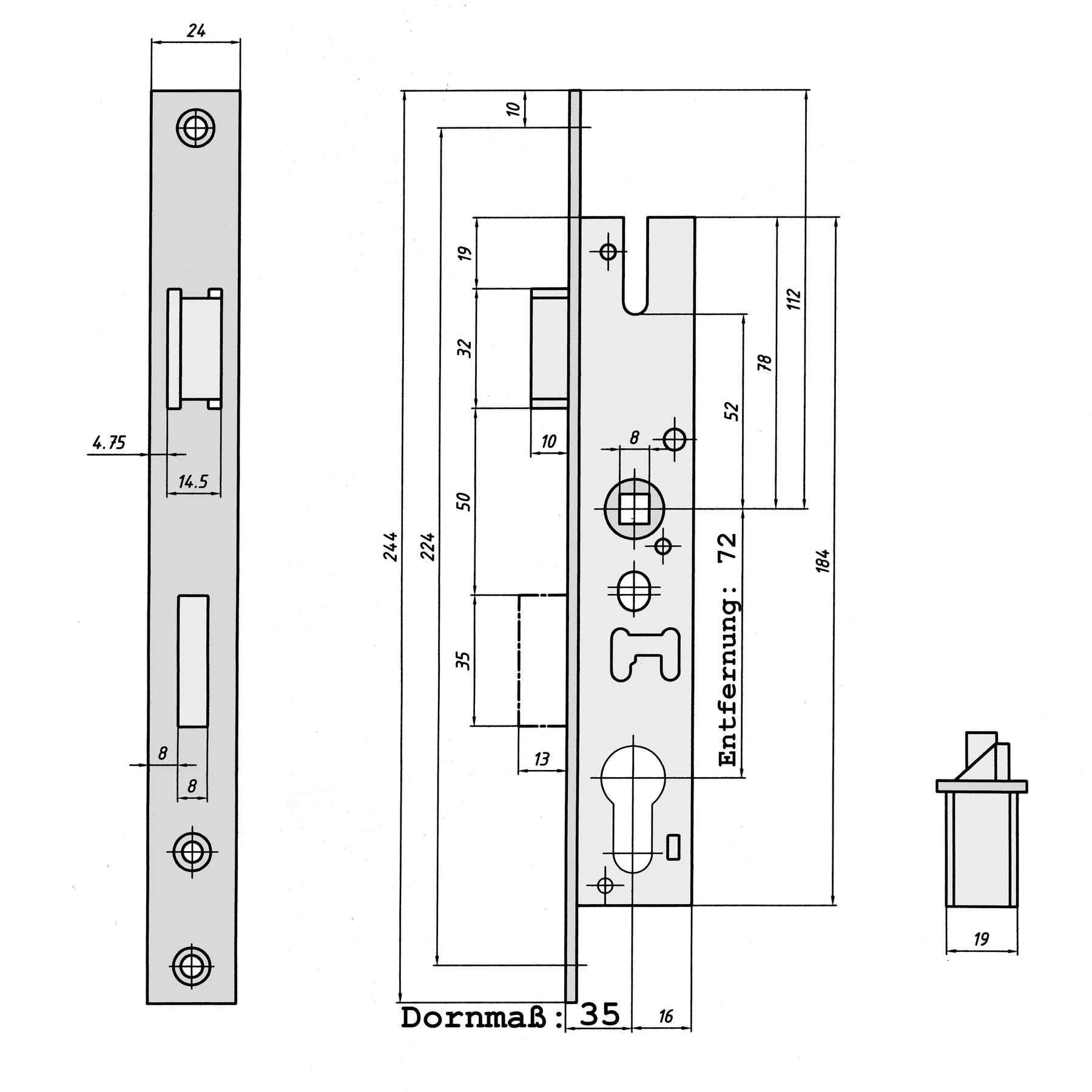 Rohrrahmen Schloss Bever 1004 72 Nuss 8 35 Dorn Einsteckschloss für Profilzylinder