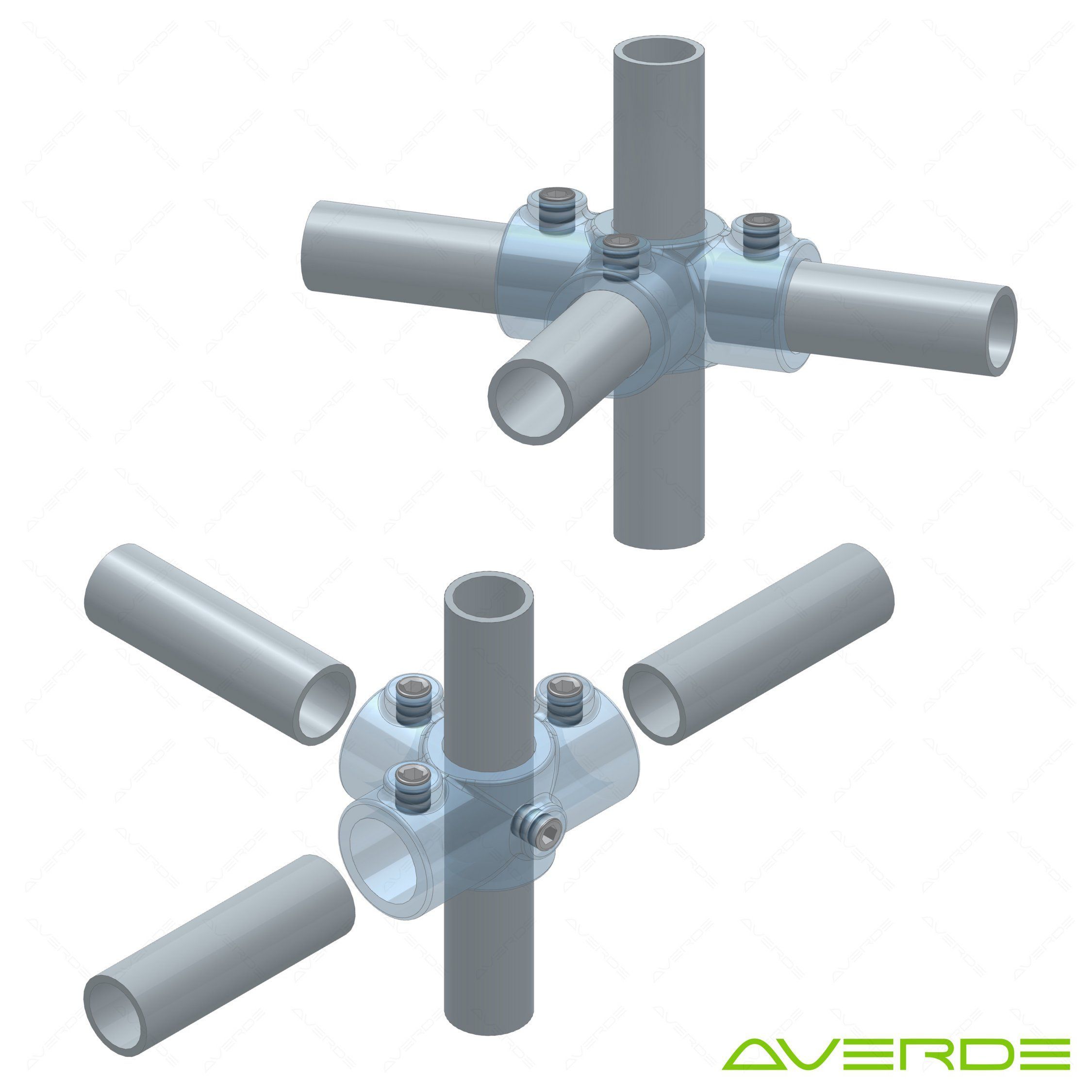 Rohrverbinder 4-fach Kreuzverbinder schwarz 1/2" (21,3 mm), 90° - Durchgang AVERDE