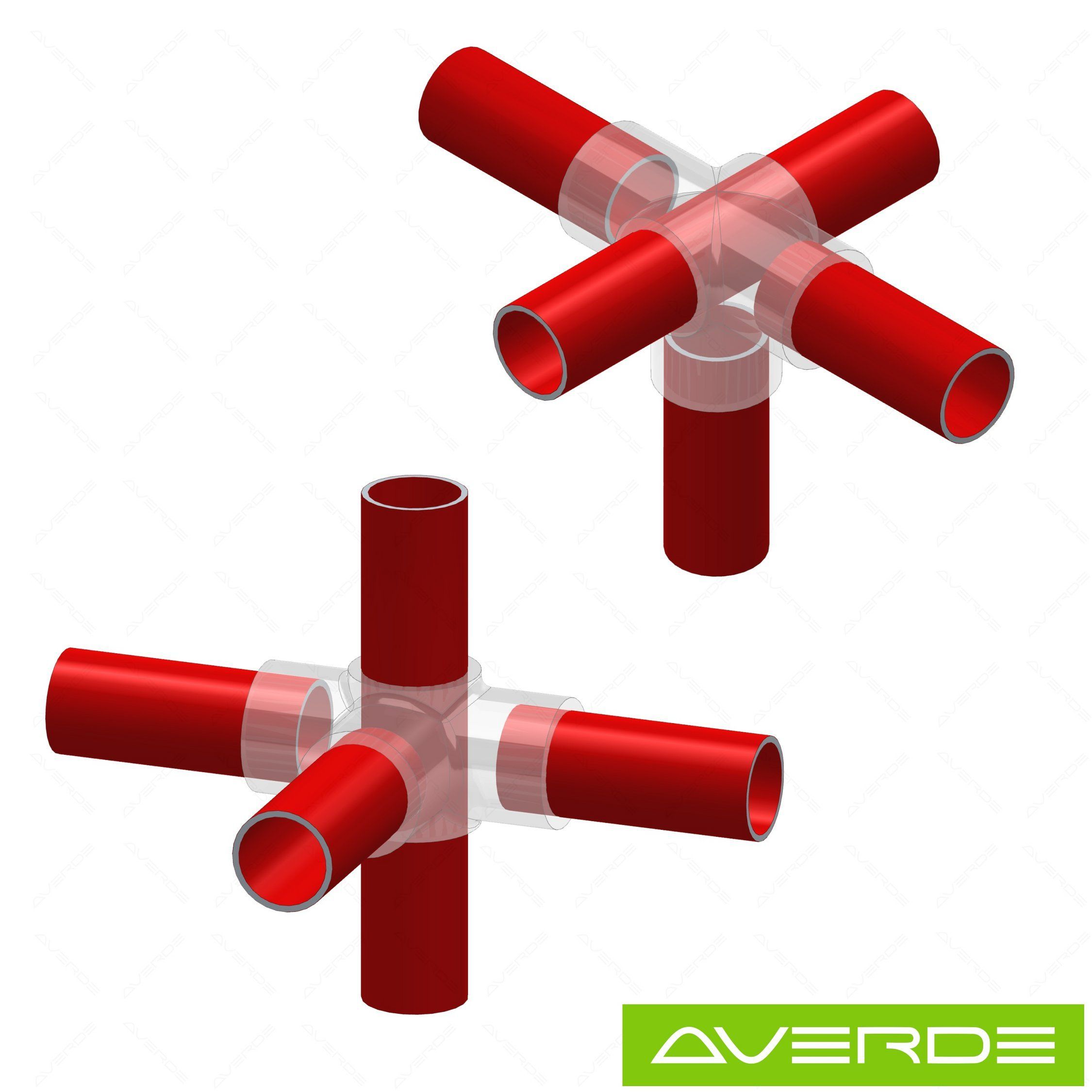 Rohrverbinder 4-fach Kreuzverbinder schwarz 1" (33,7 mm), 90? - Durchgang AVERDE