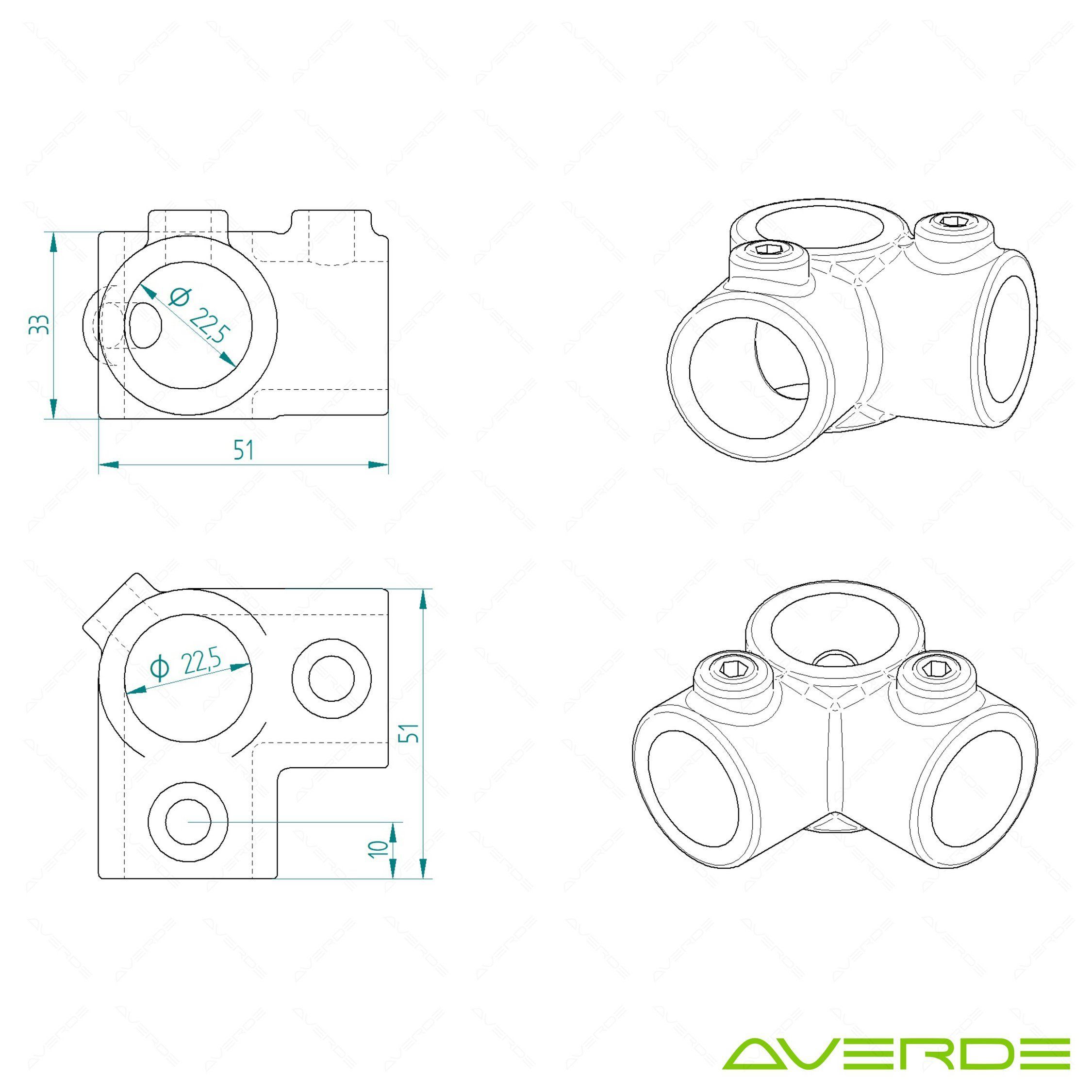Rohrverbinder Eckverbinder 1/2" (21,3 mm), 90° - Durchgang AVERDE