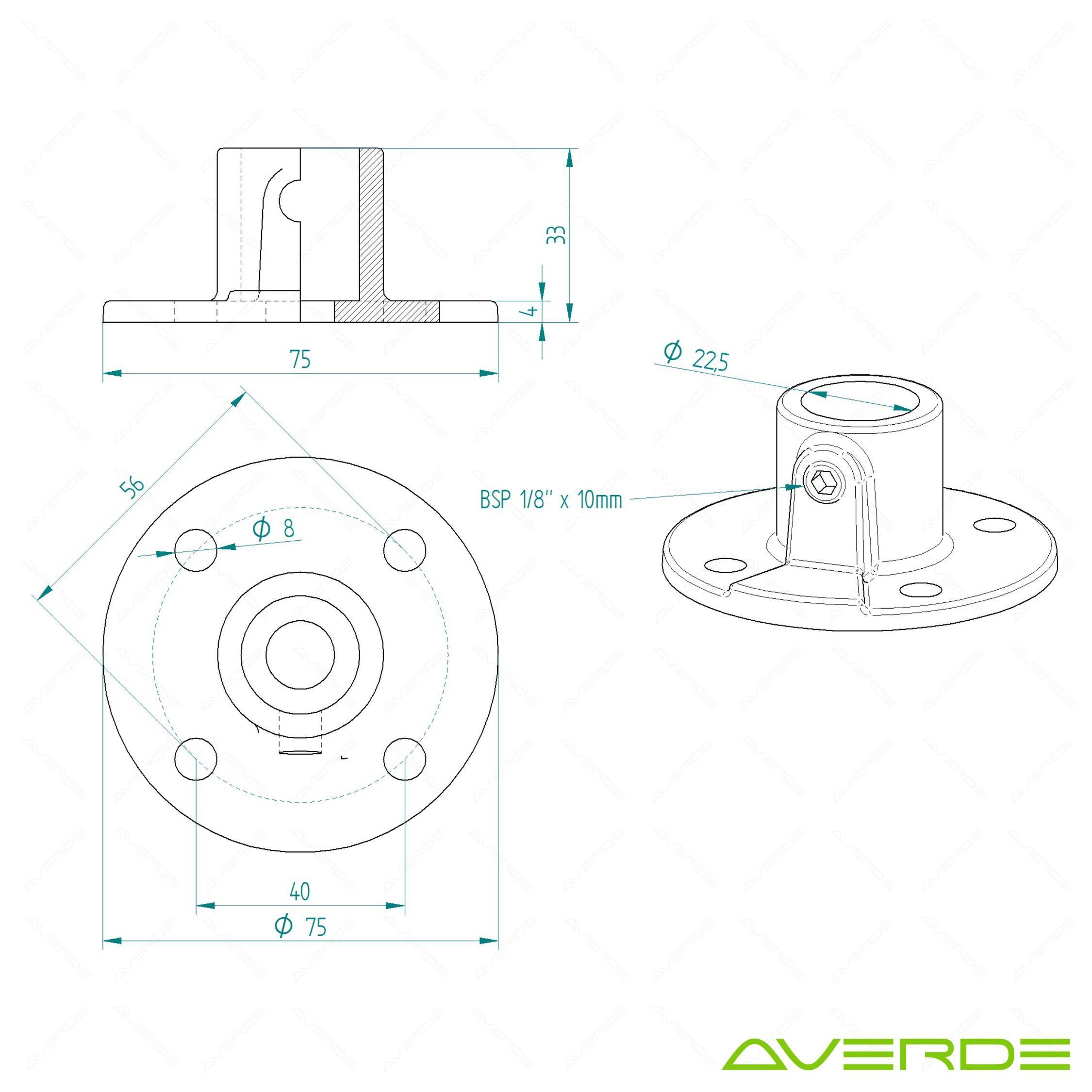 Rohrverbinder Fu?platte rund schwarz 1/2" (21,3 mm) AVERDE