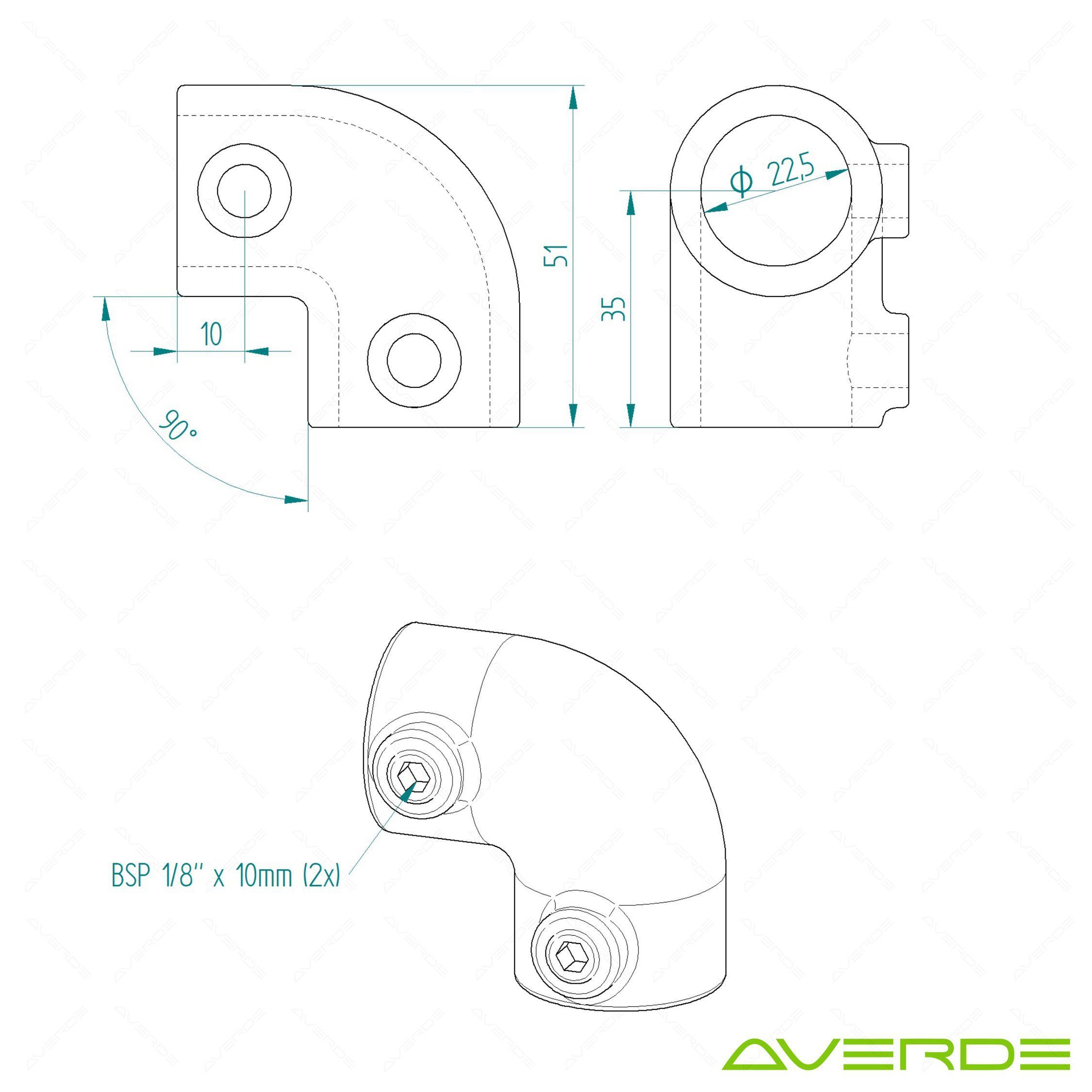 Rohrverbinder Kniest?ck schwarz 1/2" (21,3 mm), 90? AVERDE