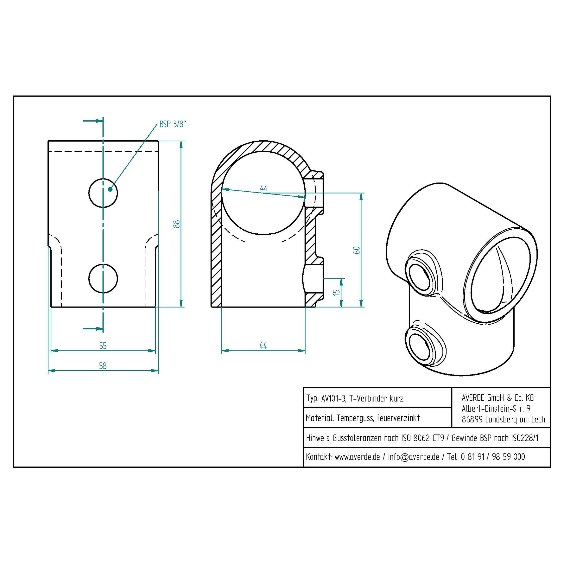 Rohrverbinder T-Verbinder schwarz 1 1/4" (42,4 mm), 90? - kurz AVERDE