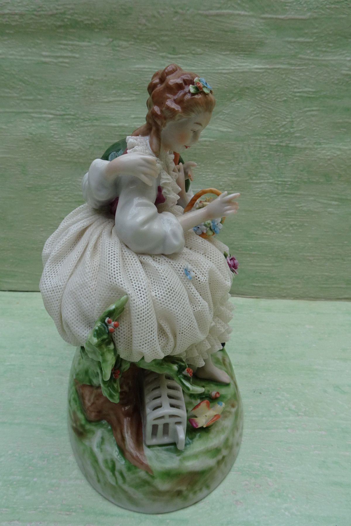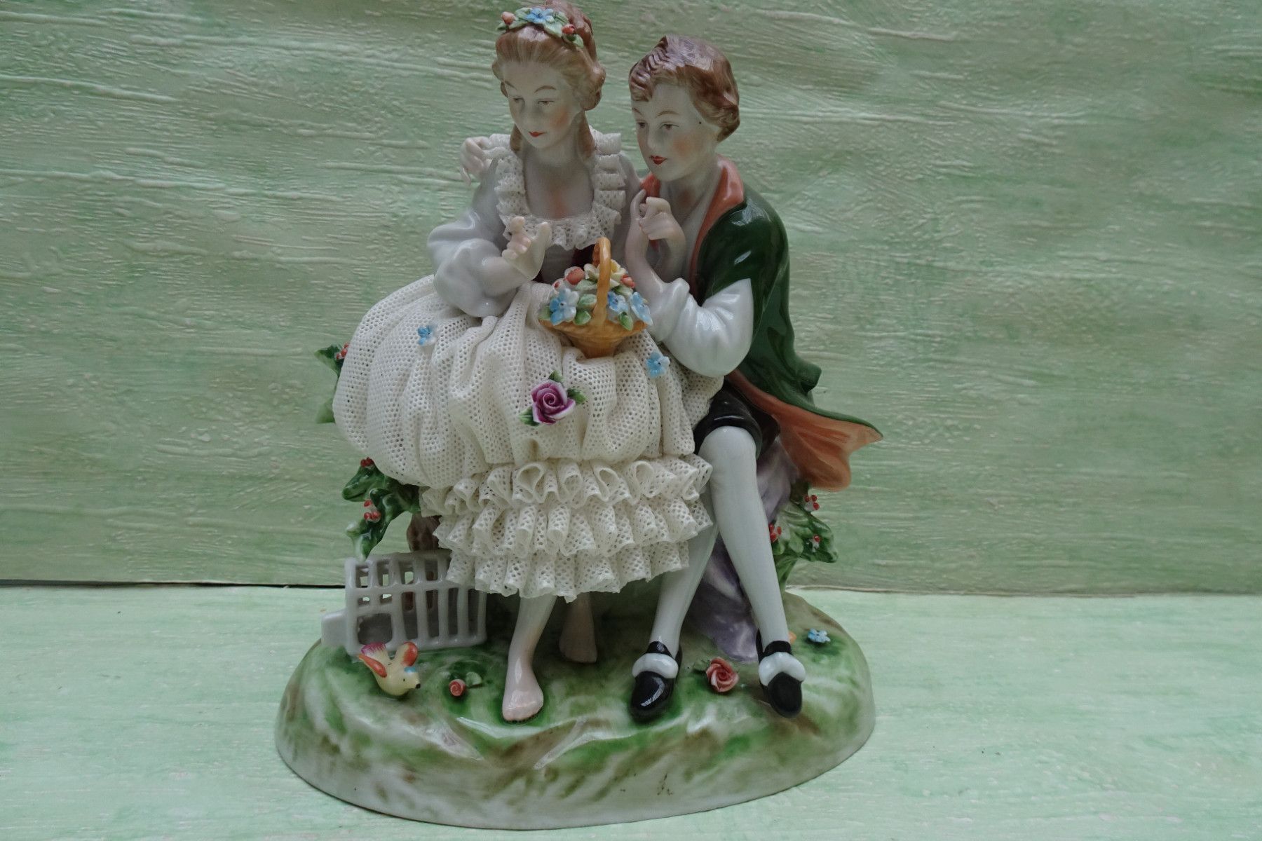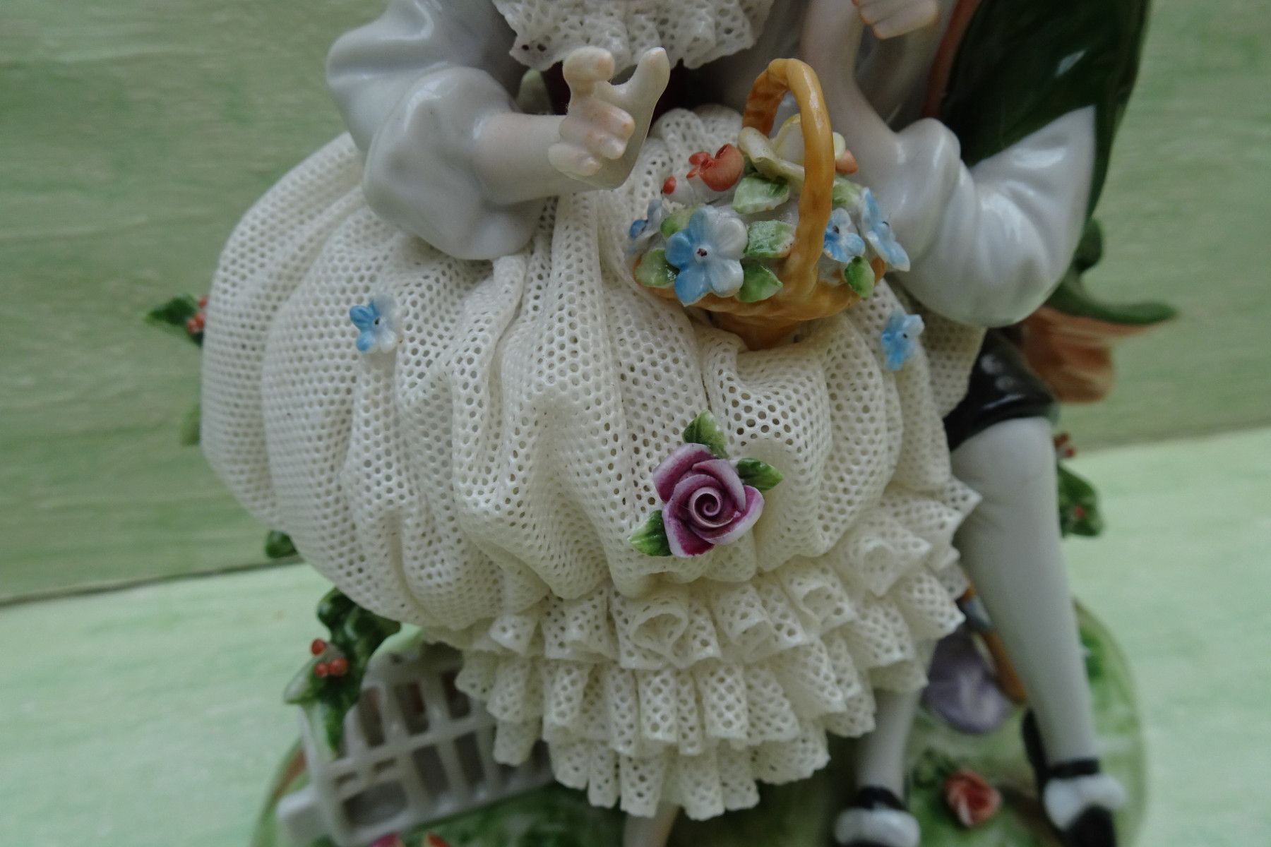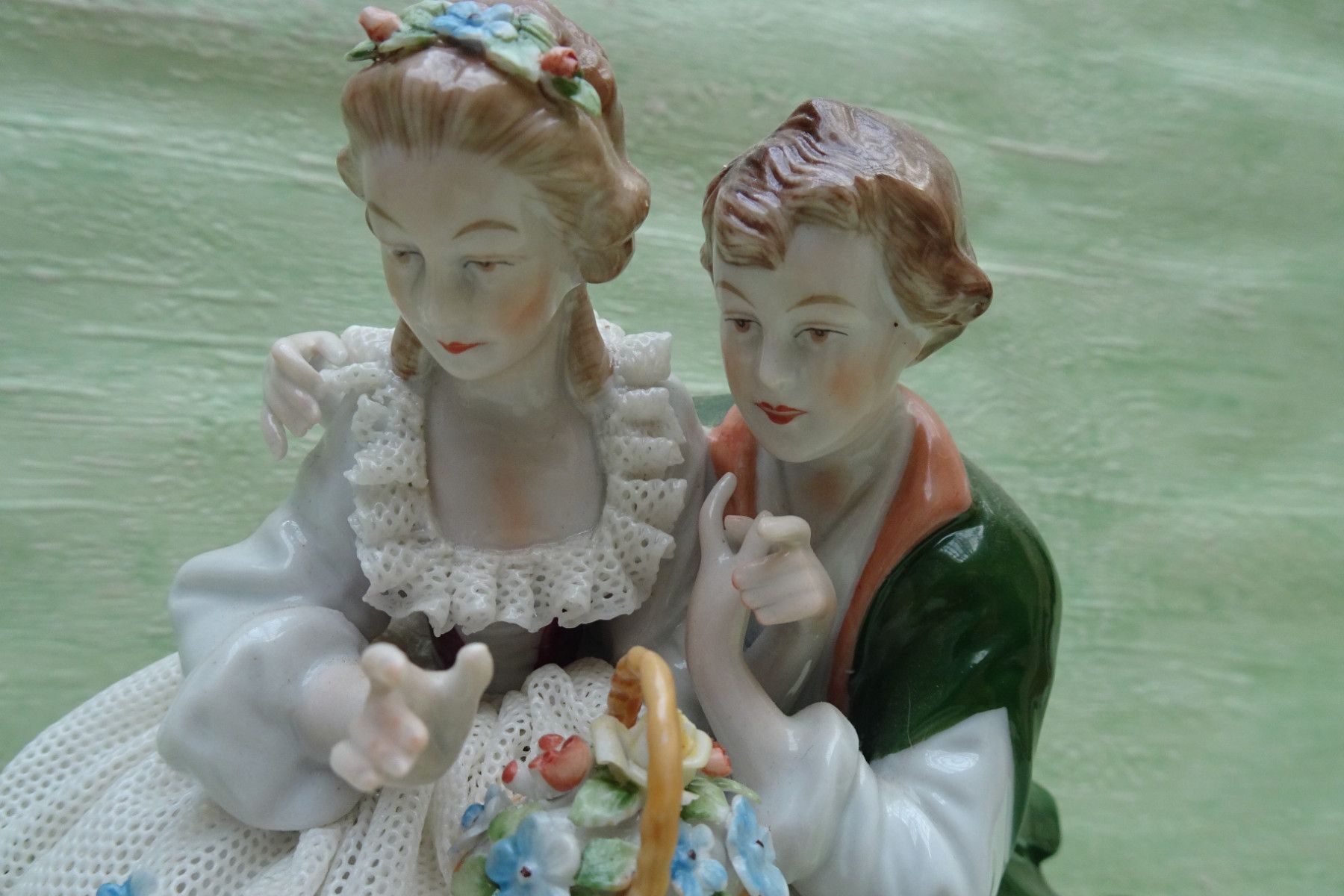 Rokoko / Barock Figuren Unterweißbach Thüringen ca 17,5cm Liebespaar Spitzentüll