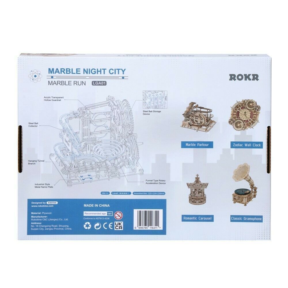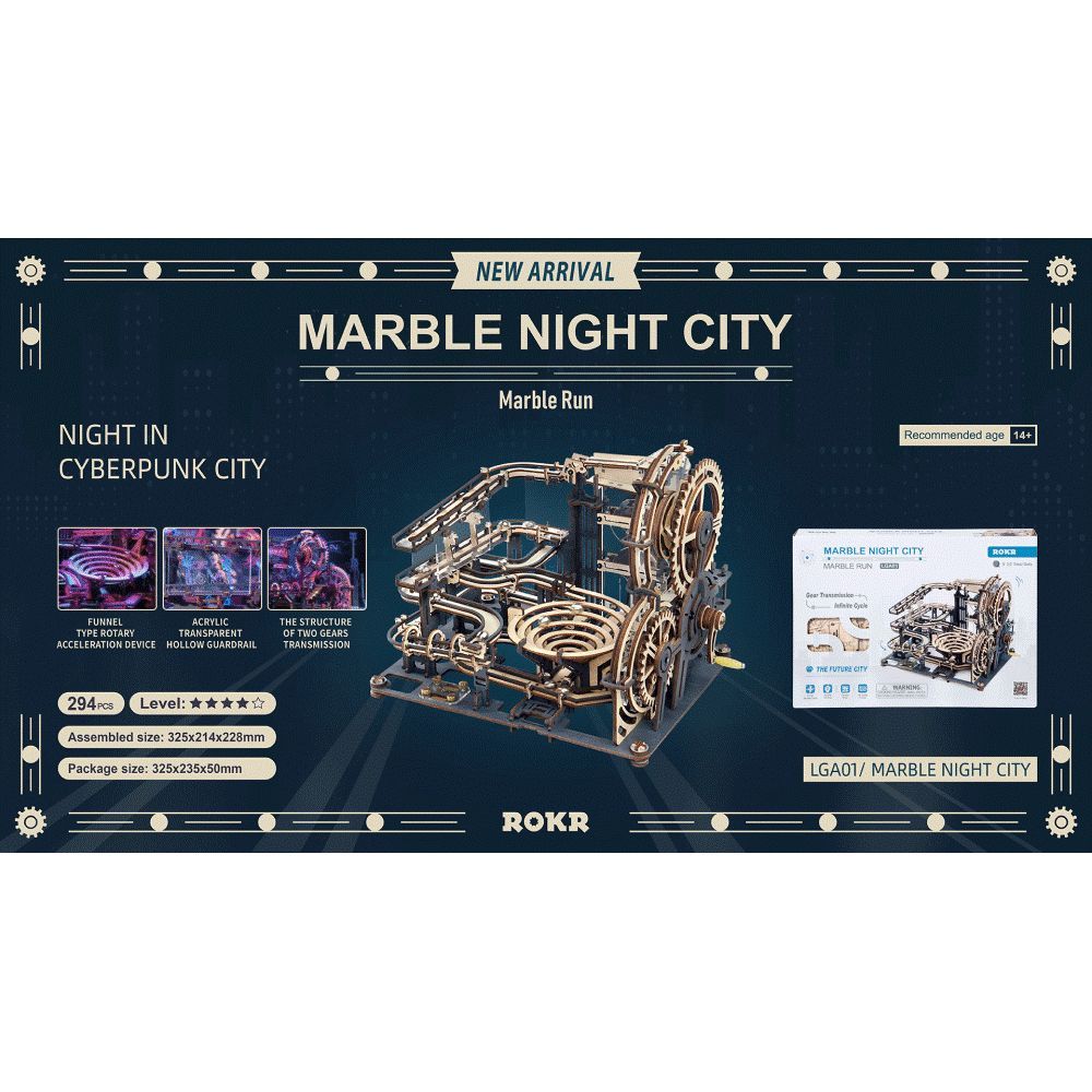 ROKR 3D-Holz-Puzzle Murmelbahn / Kugelbahn "Marble Night City"