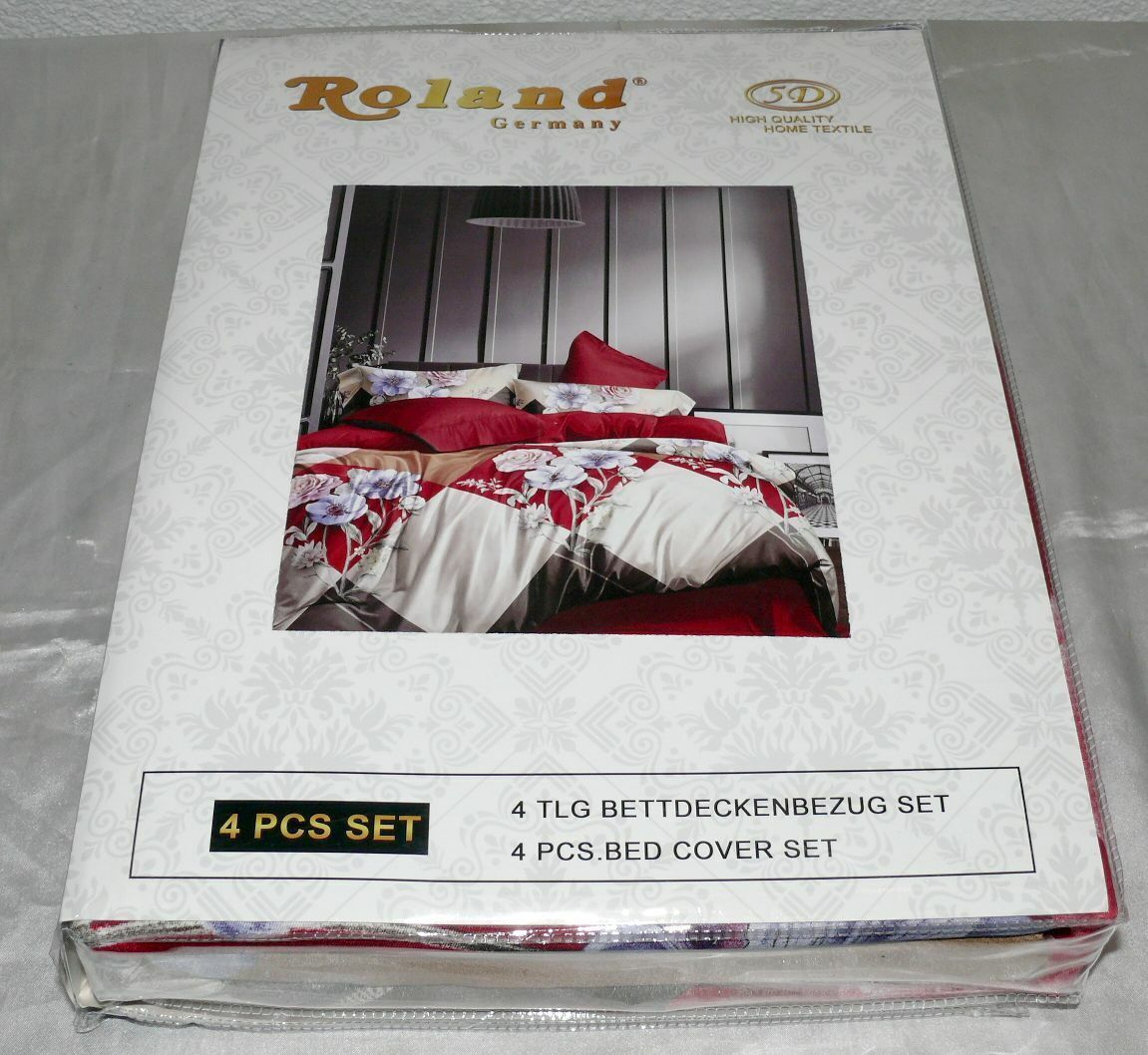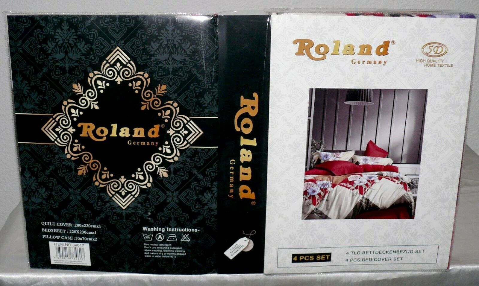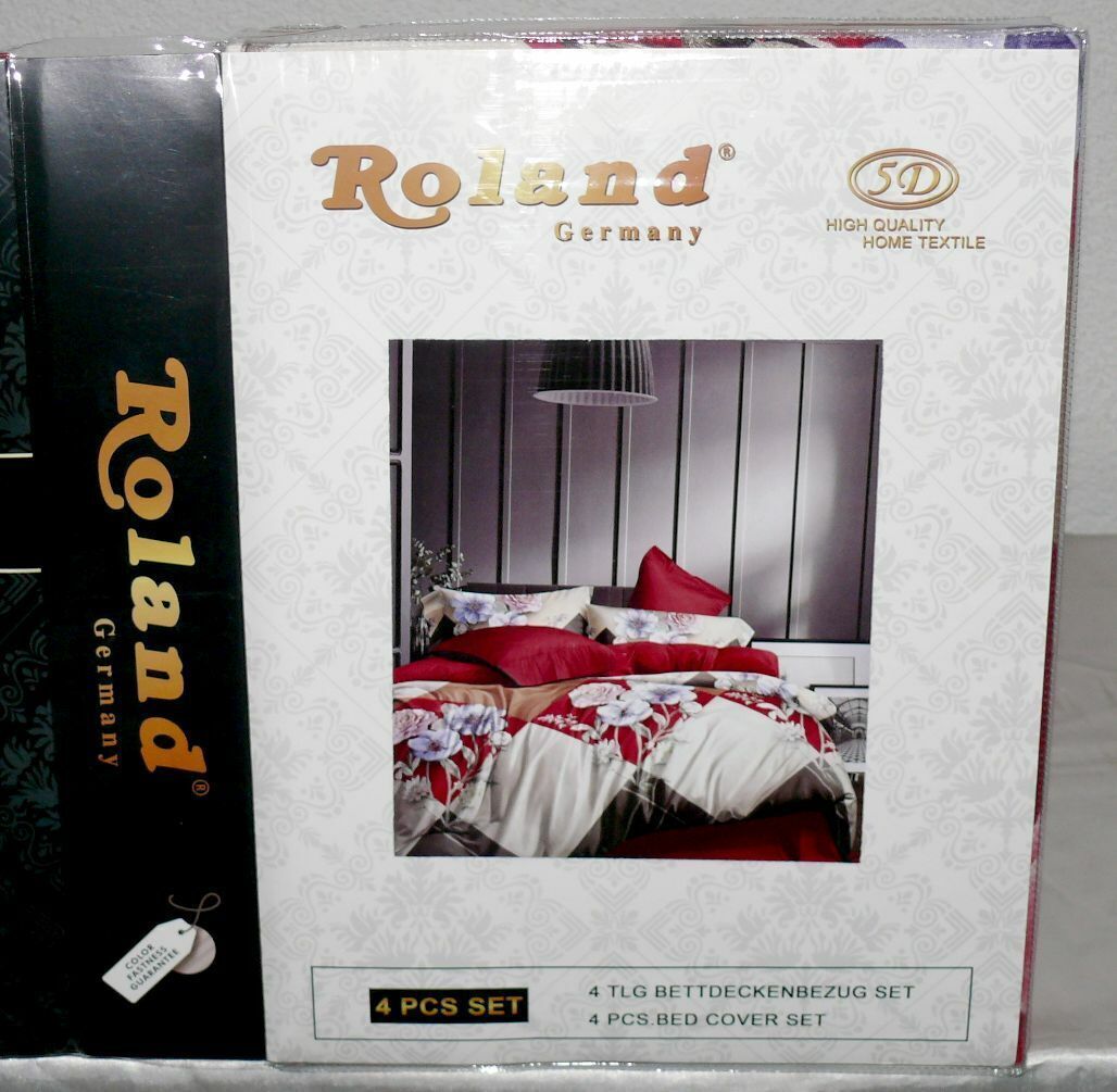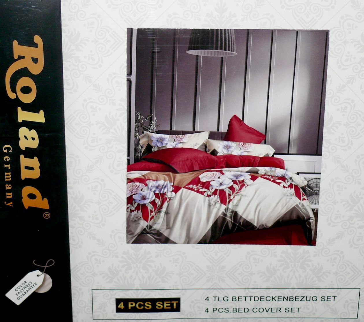 Roland 34617 Bettwäsche 200x220 4TLG. Bettdeckenbezug Set Blumen Rot Weiß Bra N5