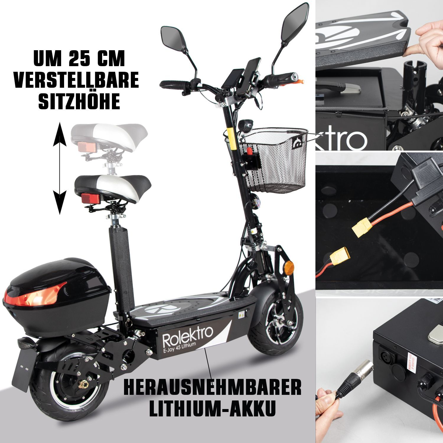 Rolektro E-Joy 45 E-Scooter Lithium Schwarz 48V-20AH Akku 1000 Watt