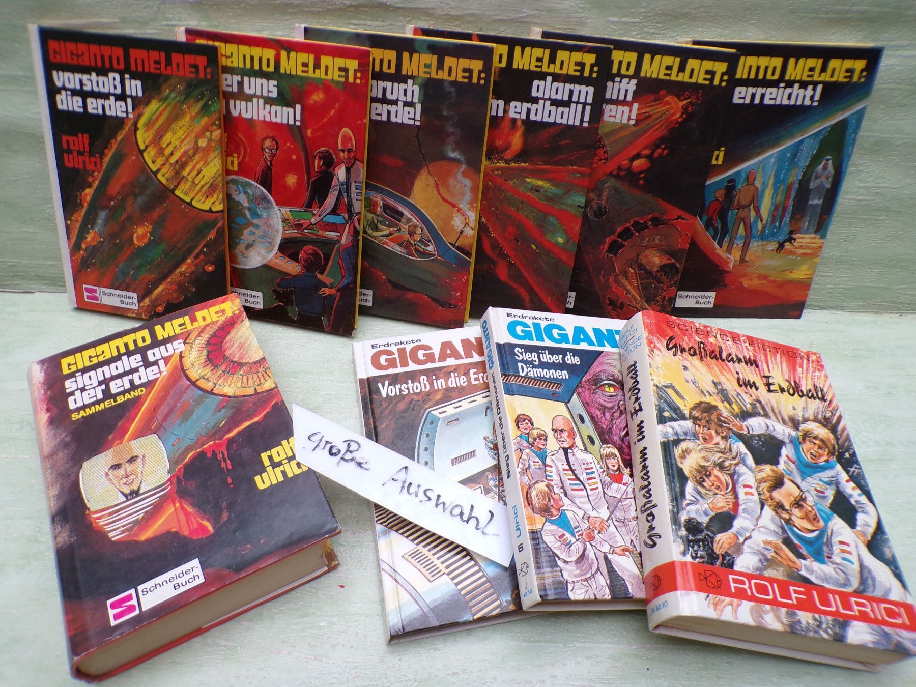 Bilderbücher - Kinderbücher ... Erinnerungen ..... Franz Schneider Verlag . Rolf Ulrici . alte Serie : Erdrakete Giganto Science-Fiction : Vorstoß in die Erde Über uns ein Vulkan Schiffbruch in der Erde Alarm im Erdball Erdschiff verloren Ziel erreicht . oder als Sammelband: Signale aus der Erde: Vo