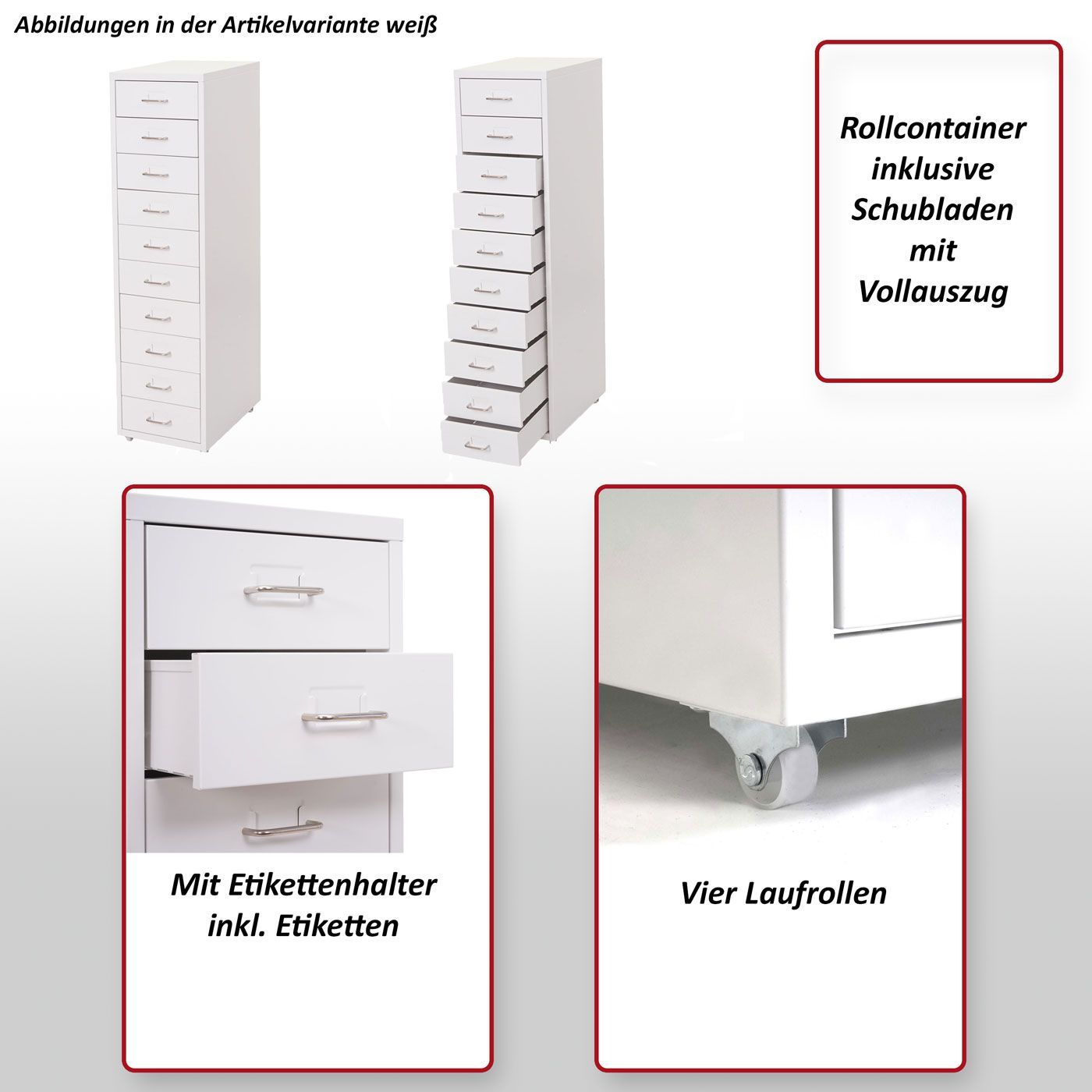 Mendler Rollcontainer Boston T851, Schubladenschrank Stahlschrank, 110x28x41cm 10 Schubladen