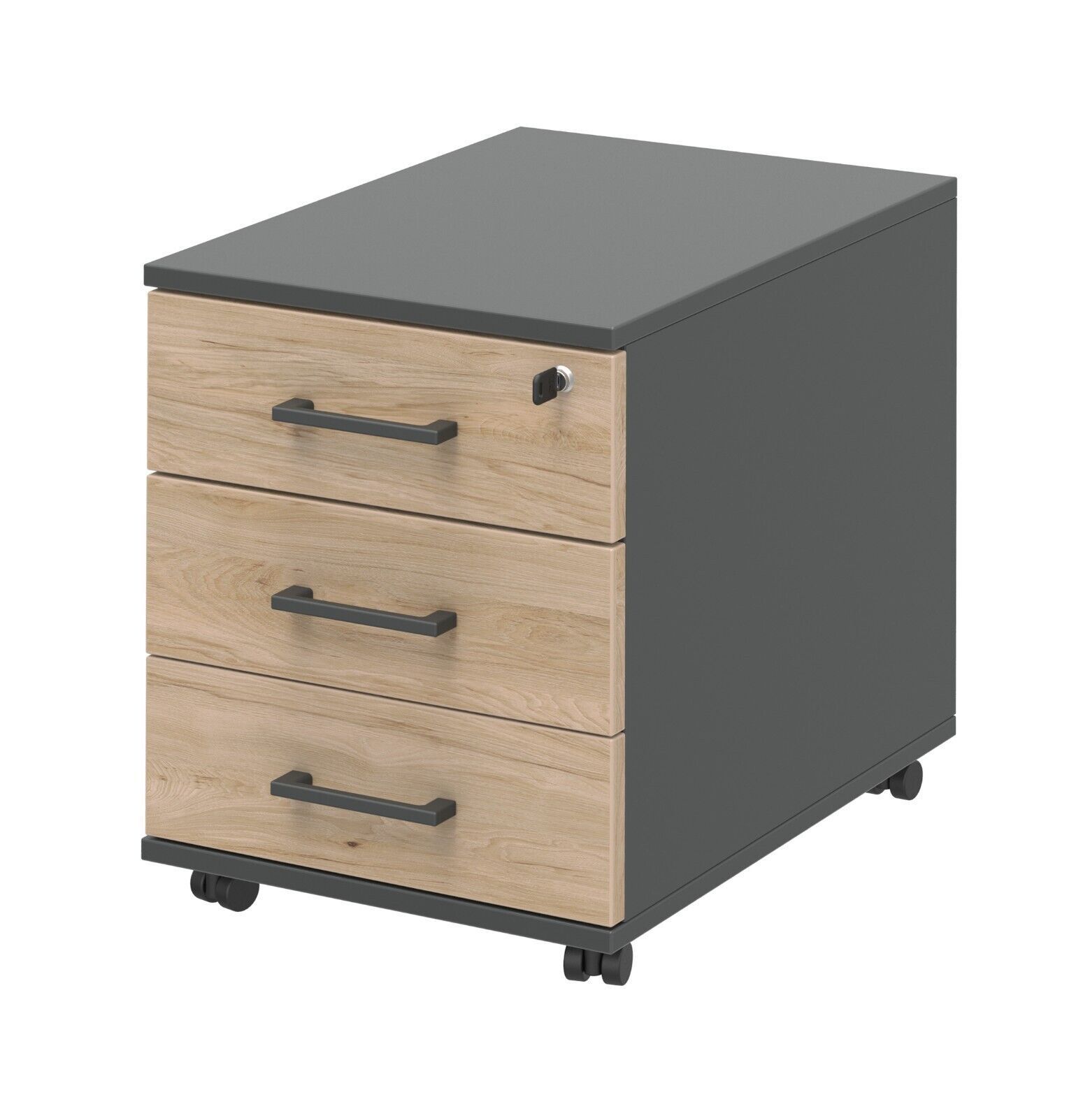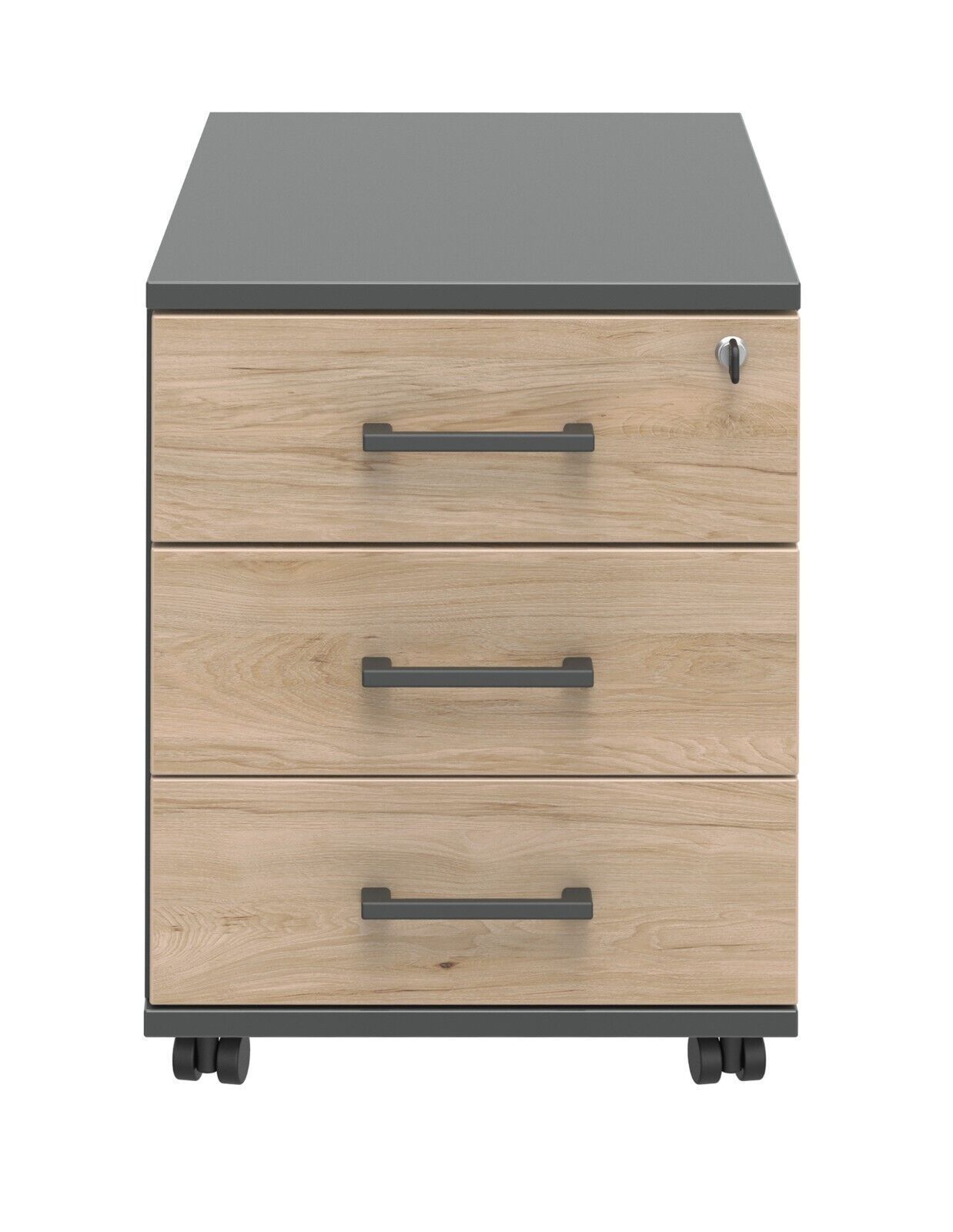 Rollcontainer Hickory / anthrazit 3 Schubkästen 42,5x55x50 cm Bürocontainer NEU