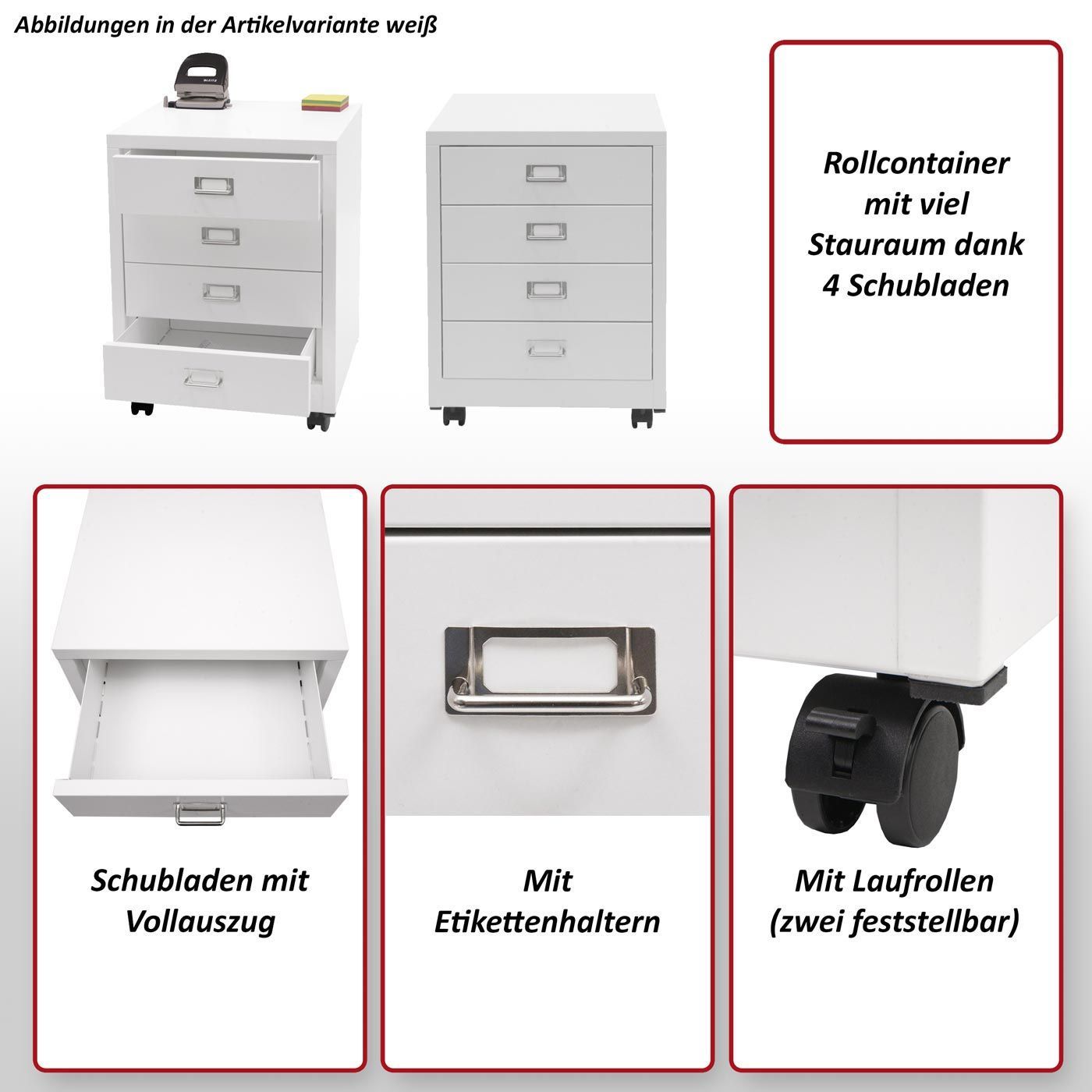 Mendler Rollcontainer HWC-L49, Schubladenschrank, Metall 55x40x41cm 4 Schubladen