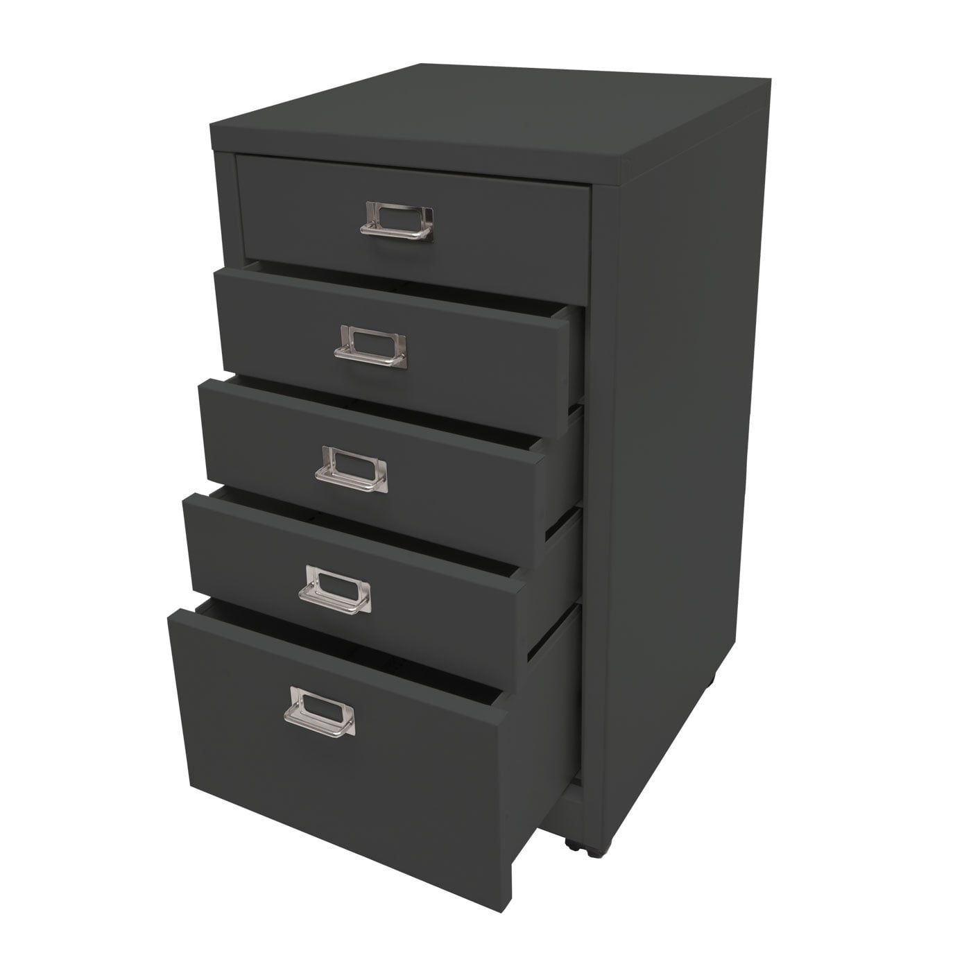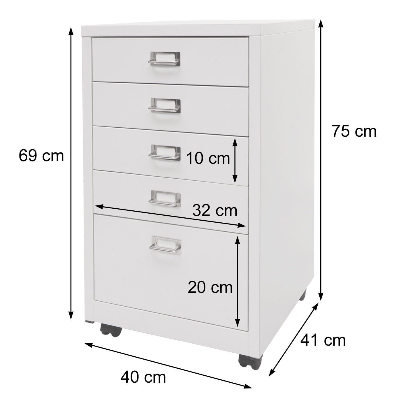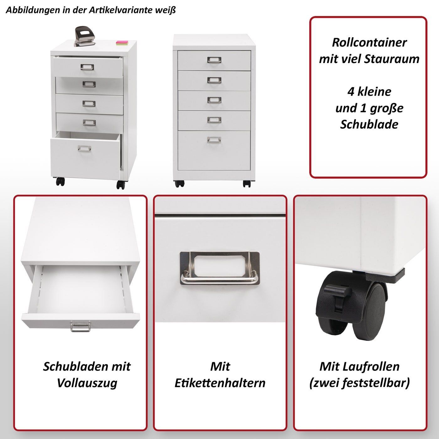 Mendler Rollcontainer HWC-L49, Schubladenschrank Stahlschrank, 75x40x41cm 5 Schubladen