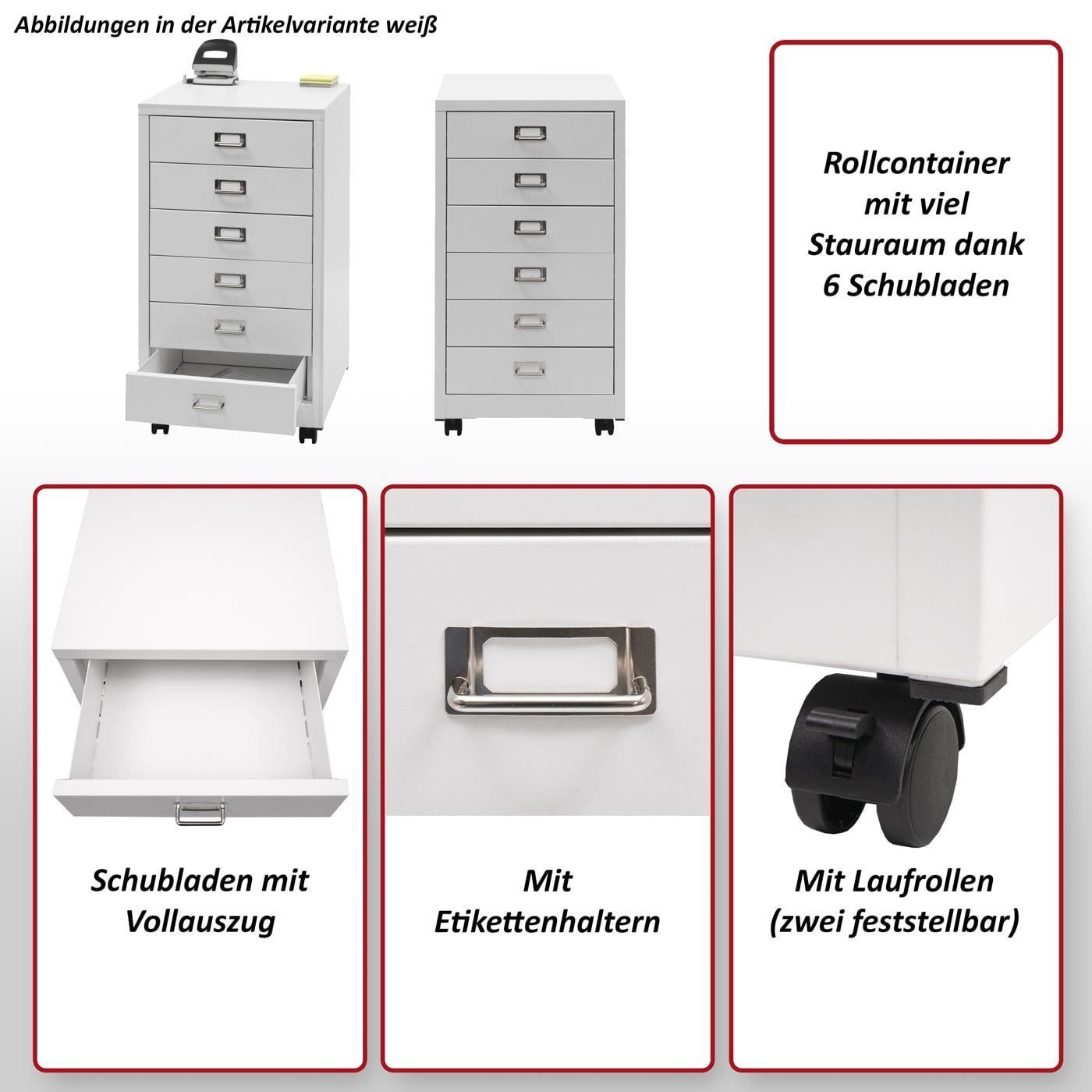 Mendler Rollcontainer HWC-L49, Schubladenschrank Stahlschrank, Metall 75x40x41cm 6 Schubladen