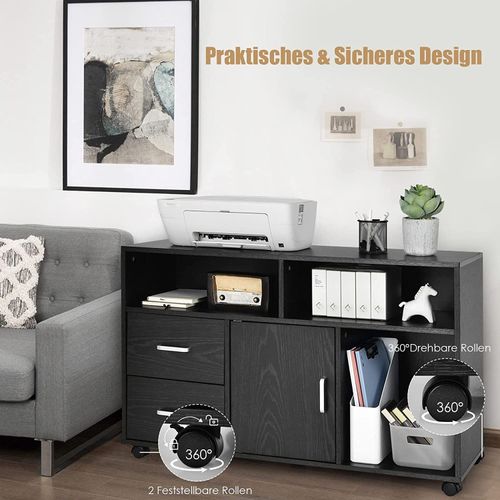 Rollcontainer mit 2 Schubladen & 3 offenen Fächern, Mobiler Aktenschrank mit 5 Rädern