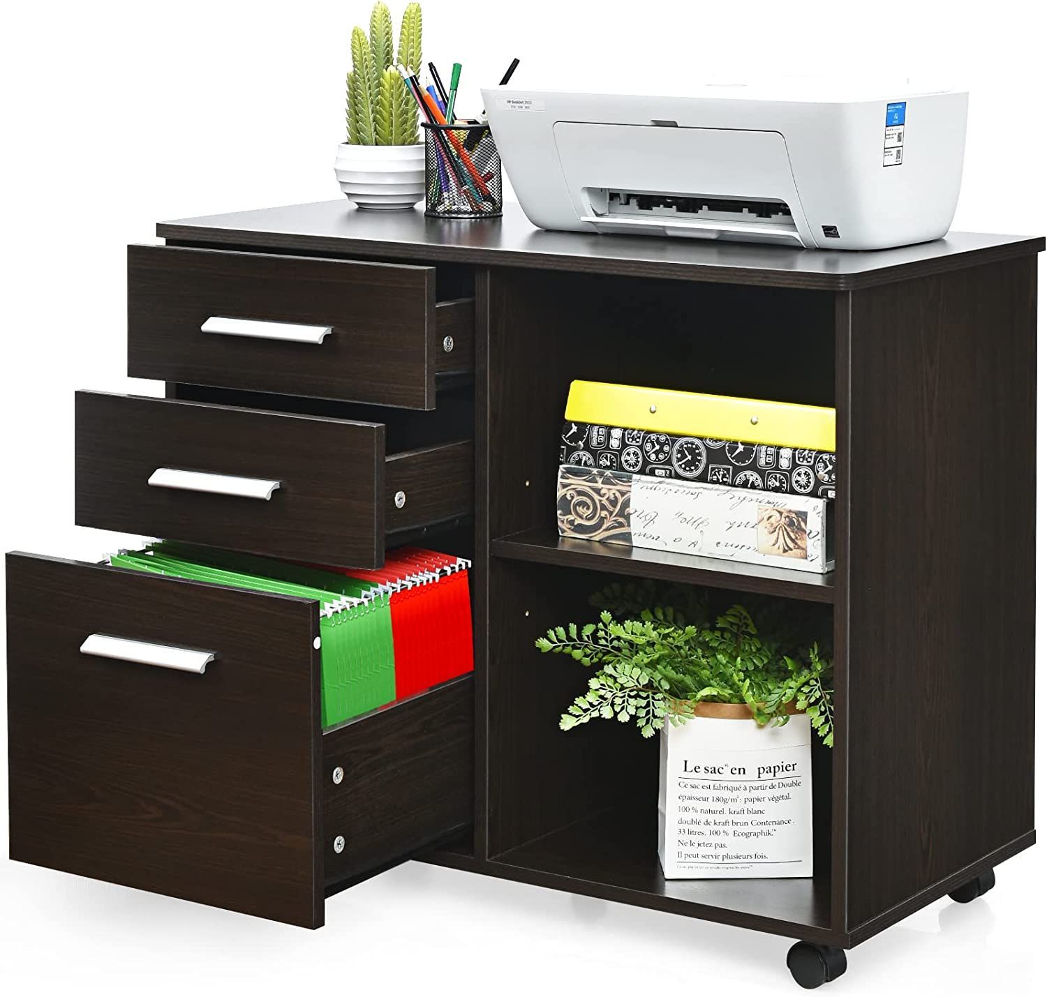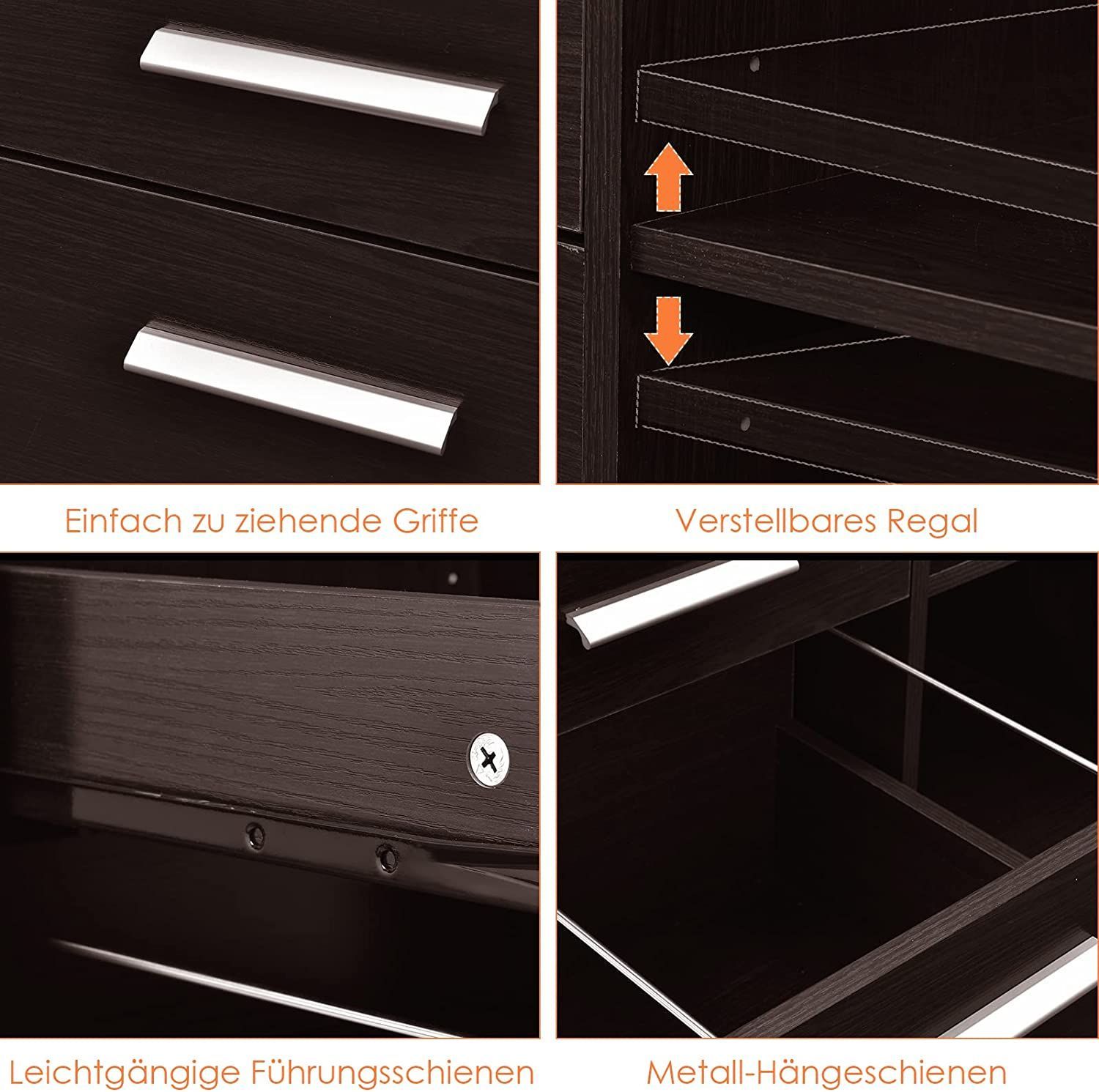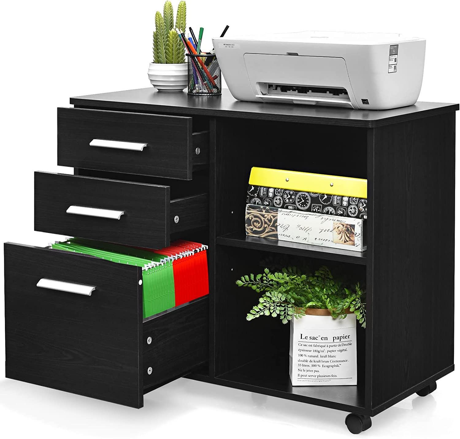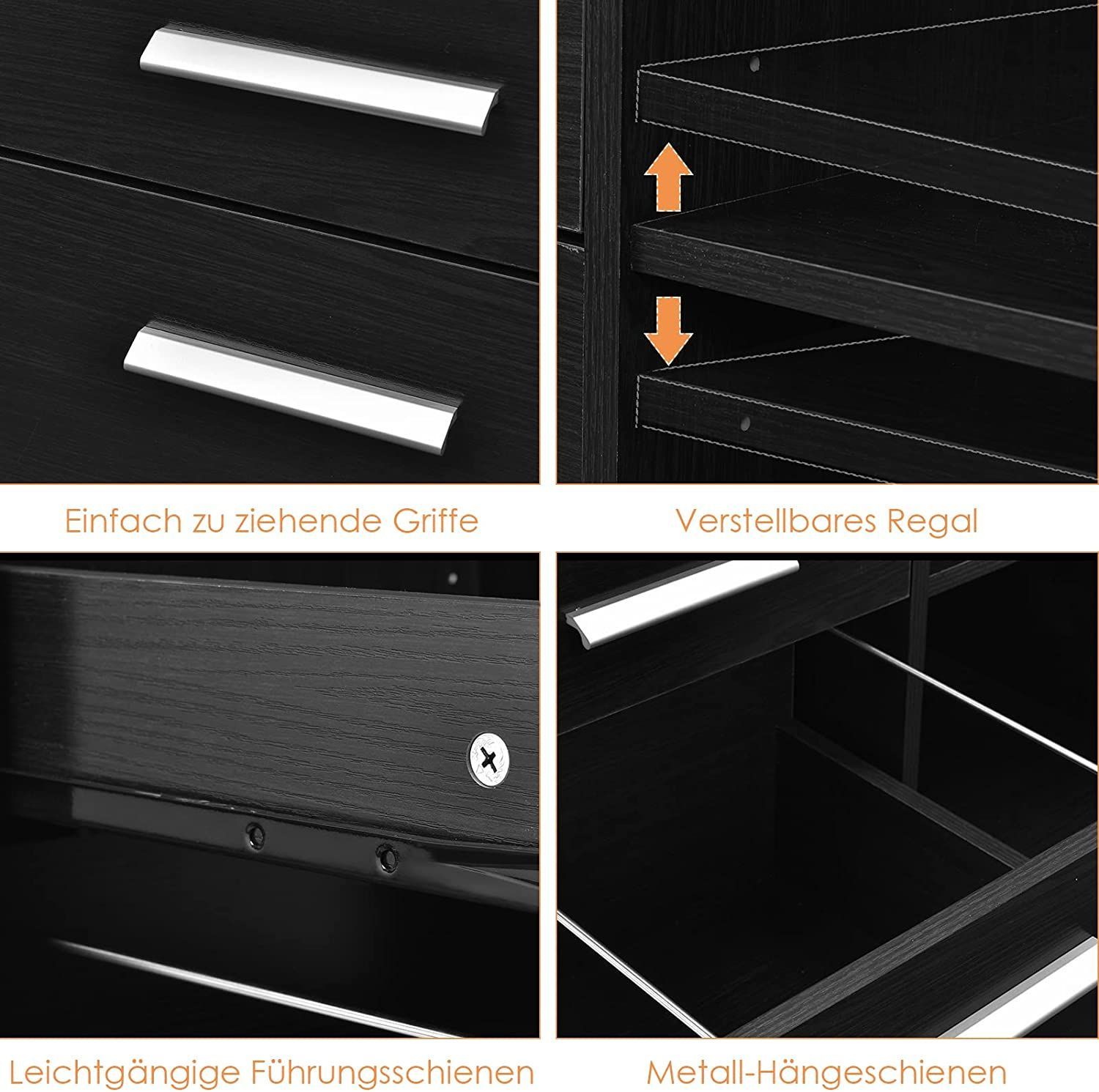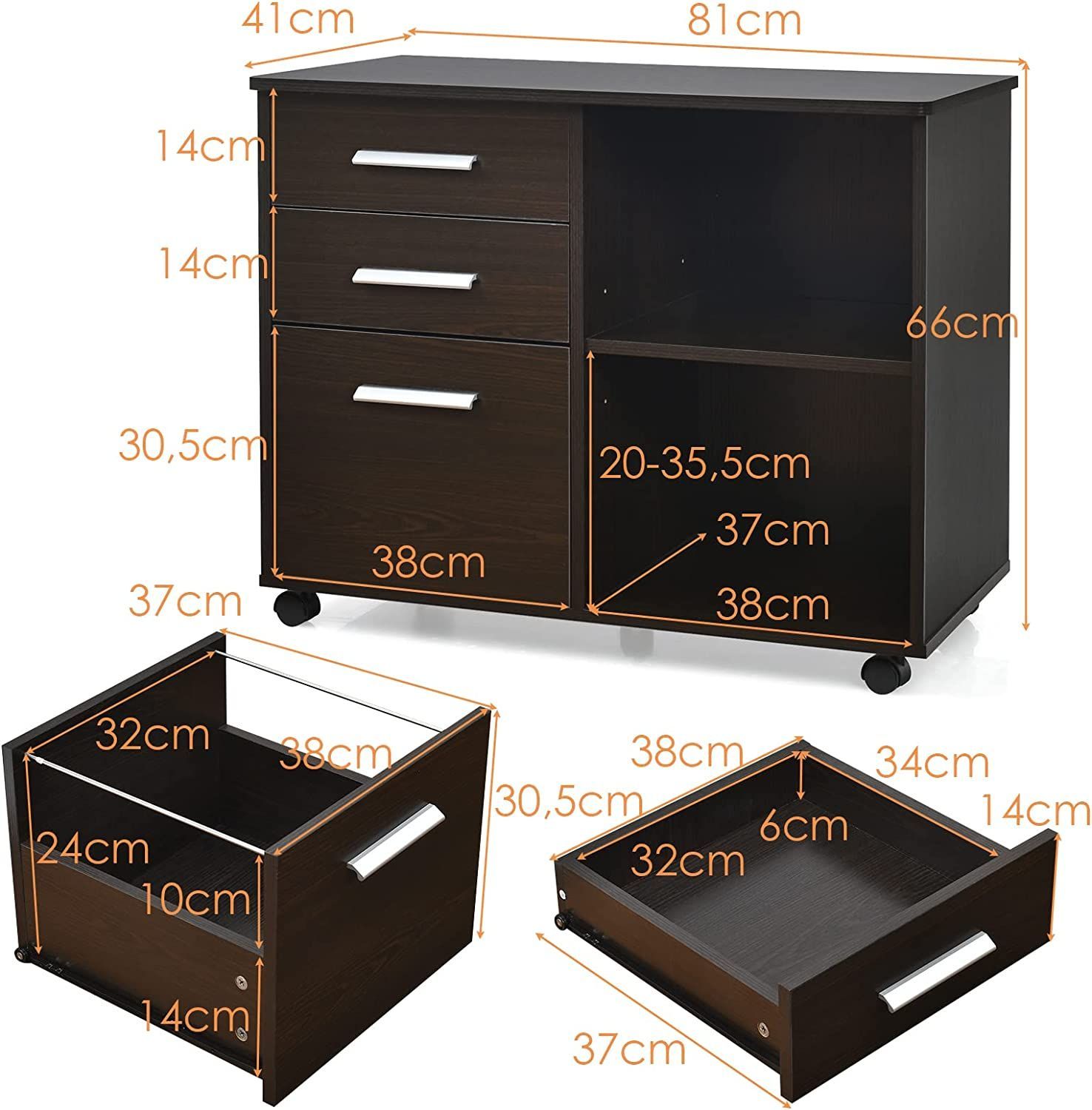 Rollcontainer mit 3 Schubladen, mobiler Aktenschrank mit Rädern, Aufbewahrungsschrank