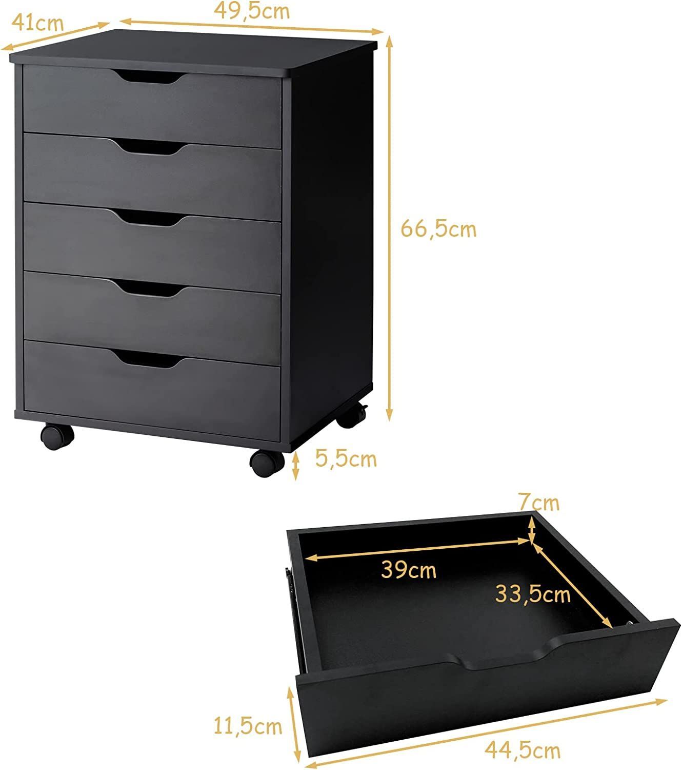 Rollcontainer mit 5 Schubladen, mobiler Aktenschrank mit Rädern, Bürocontainer