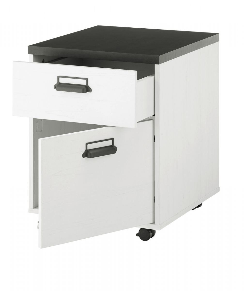 Rollcontainer Schreibtisch Büro Container mit Soft-Close weiß Pinie Stove
