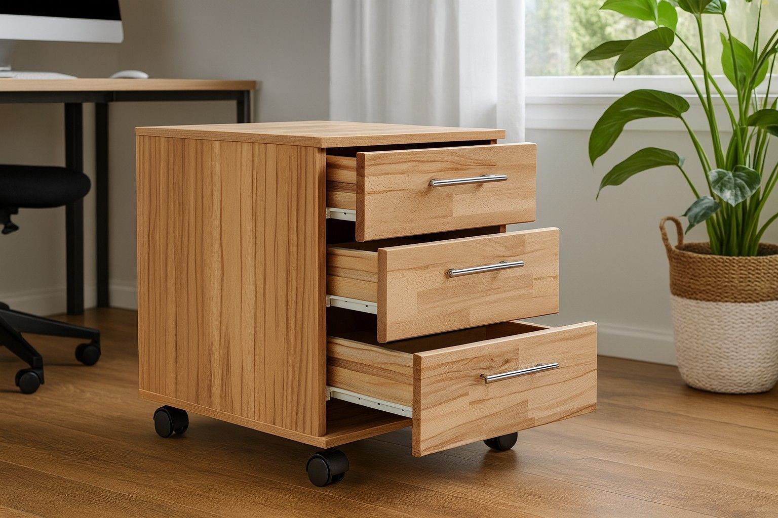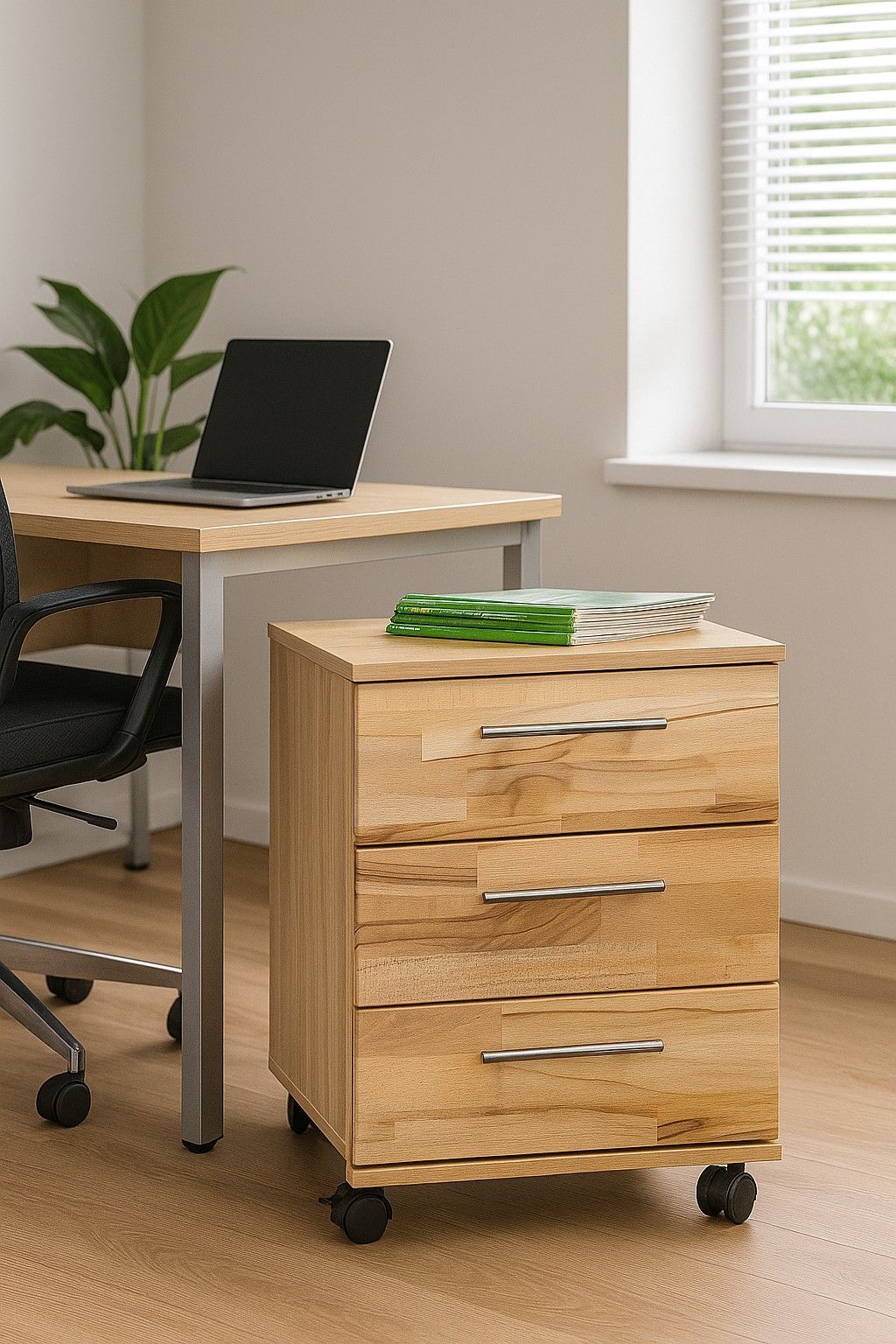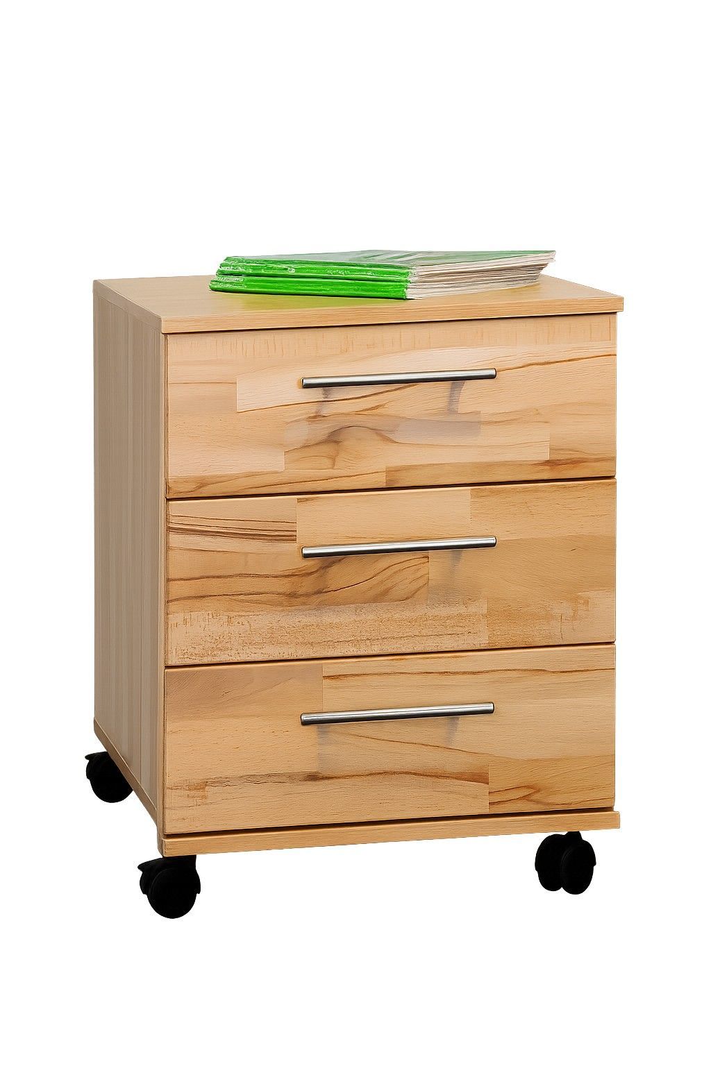 Rollcontainer Schubcontainer Kernbuche Büroschrank 3 Schubkästen #4011