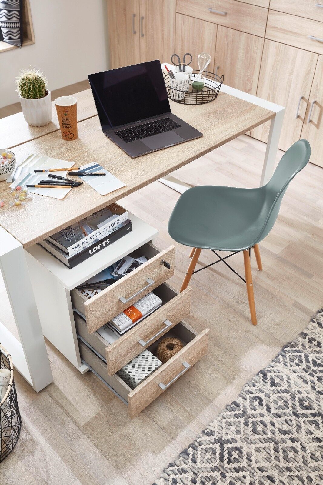 Rollcontainer Sonoma Eiche 3 Schubkästen 42,5x55x50 cm Bürocontainer Büroschrank