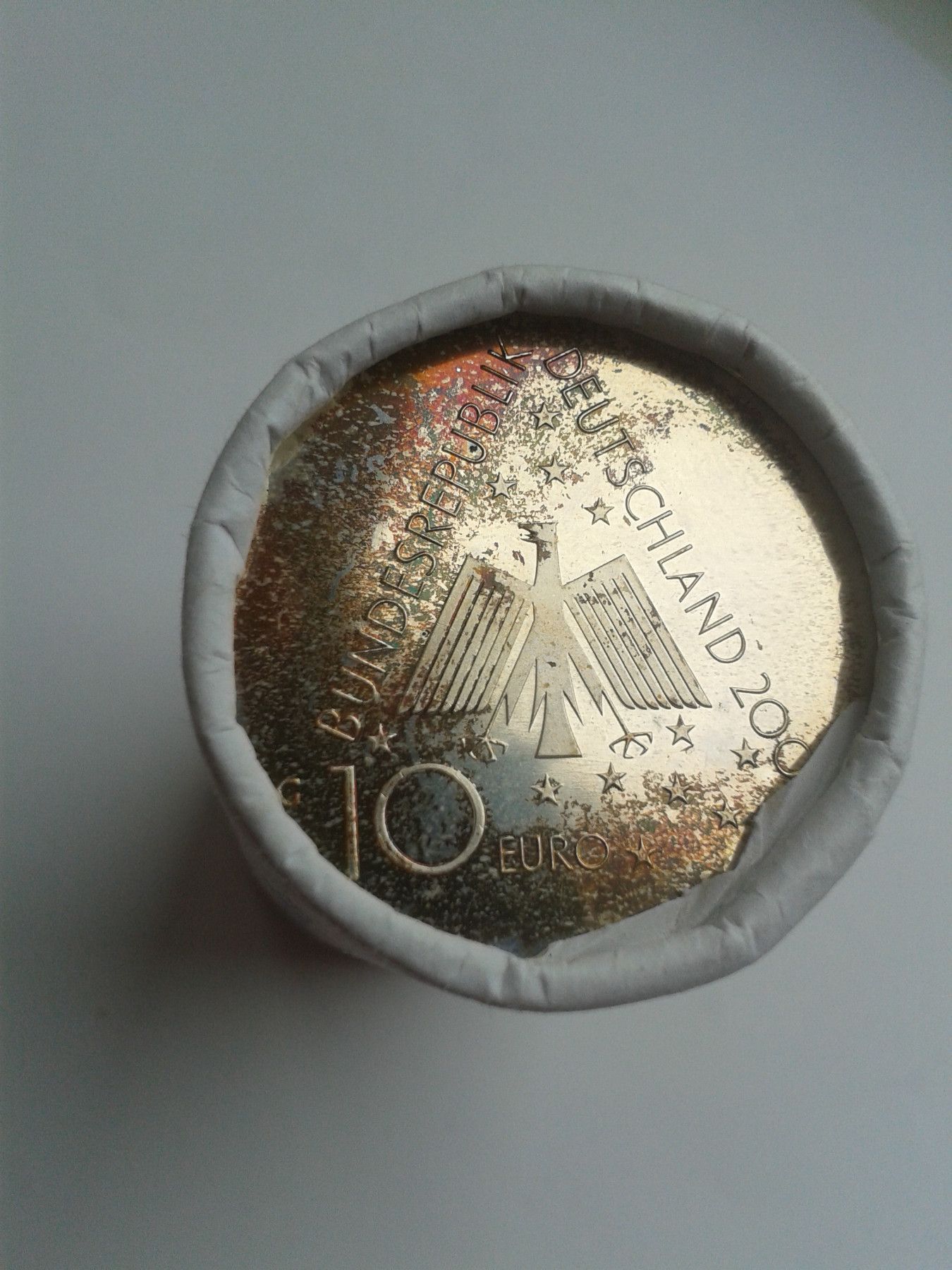 original, unversehrte 25x10 euro Münzrolle, unzirkuliert, bankfrisch, Alterspatina an den oberen Münzen bei Fragen: