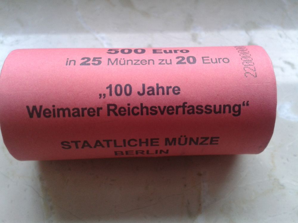 Rolle 25 x 20 euro 2019 Weimarer Reichsverfassung 925er Silber Berlin (A) Sichtrolle