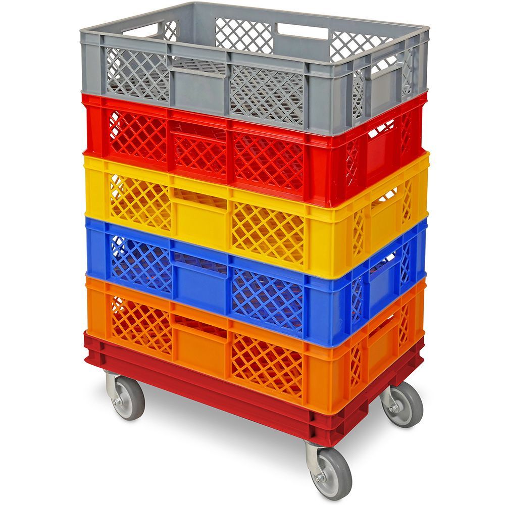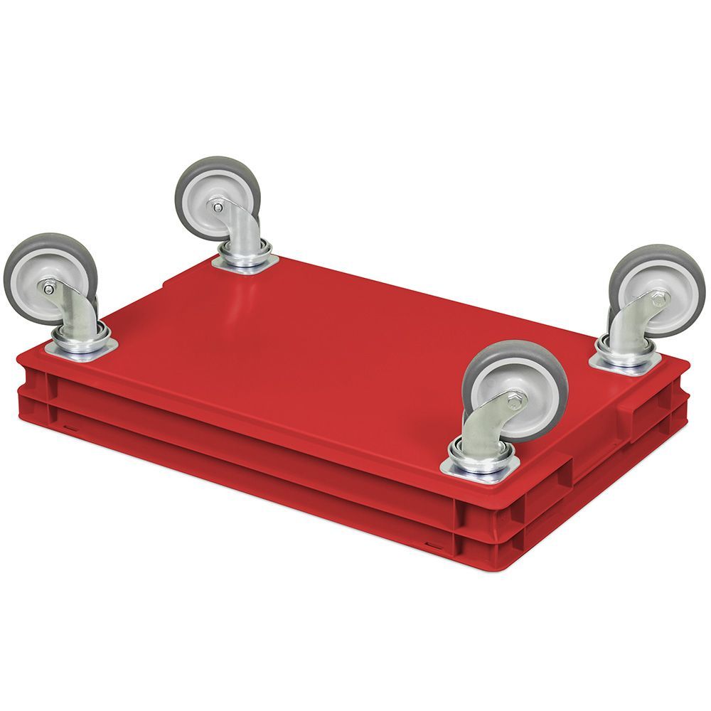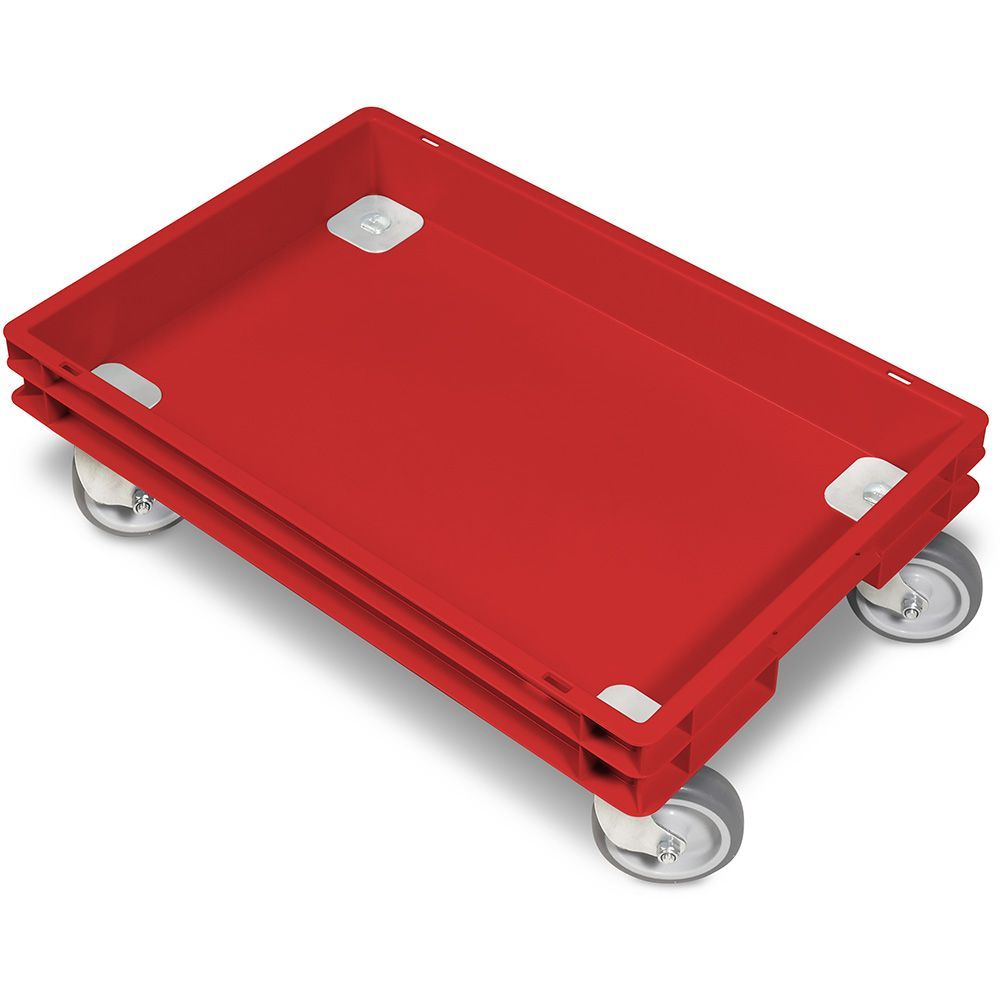 Rollkasten für 600x400mm Eurobehälter, graue Gummiräder, Trg 100 kg, rot