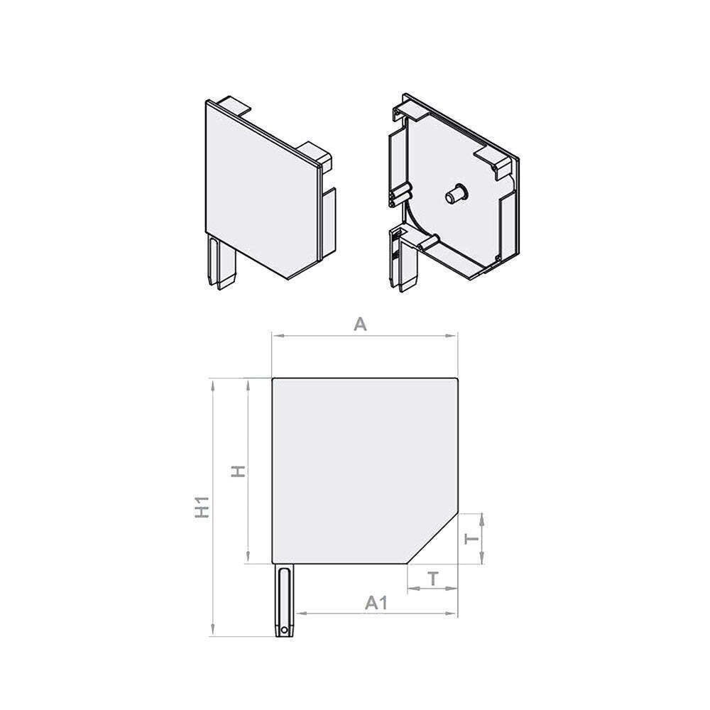 Blendkappe ST2000 BS137 L R Blendkappe ST2000 BS137 L R Passend für das Rollladensystem ST2000 1 Paar bis zu 0,42kg Material: Aluminium Maße siehe Zeichnung: A - 138mm Maße siehe Zeichnung: A1 - 119mm Maße siehe Zeichnung: H - 138mm Maße siehe Zeichnung: H1 - 203mm Maße siehe Zeichnung: T - 38mm Lie