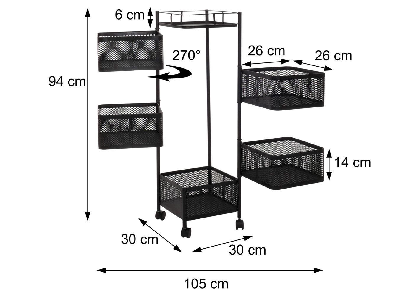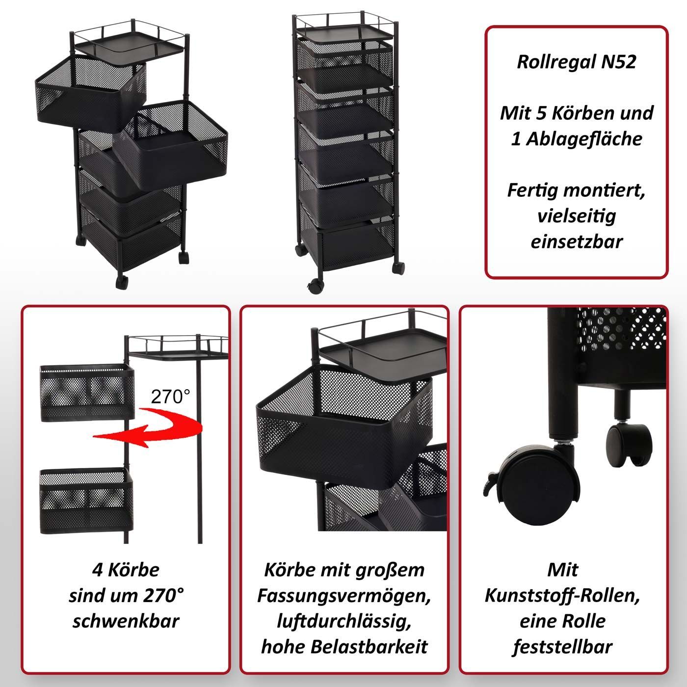 Mendler Rollregal HWC-N52, Rollwagen Ablage, rollbar Körbe schwenkbar Eisen 94x30x30cm