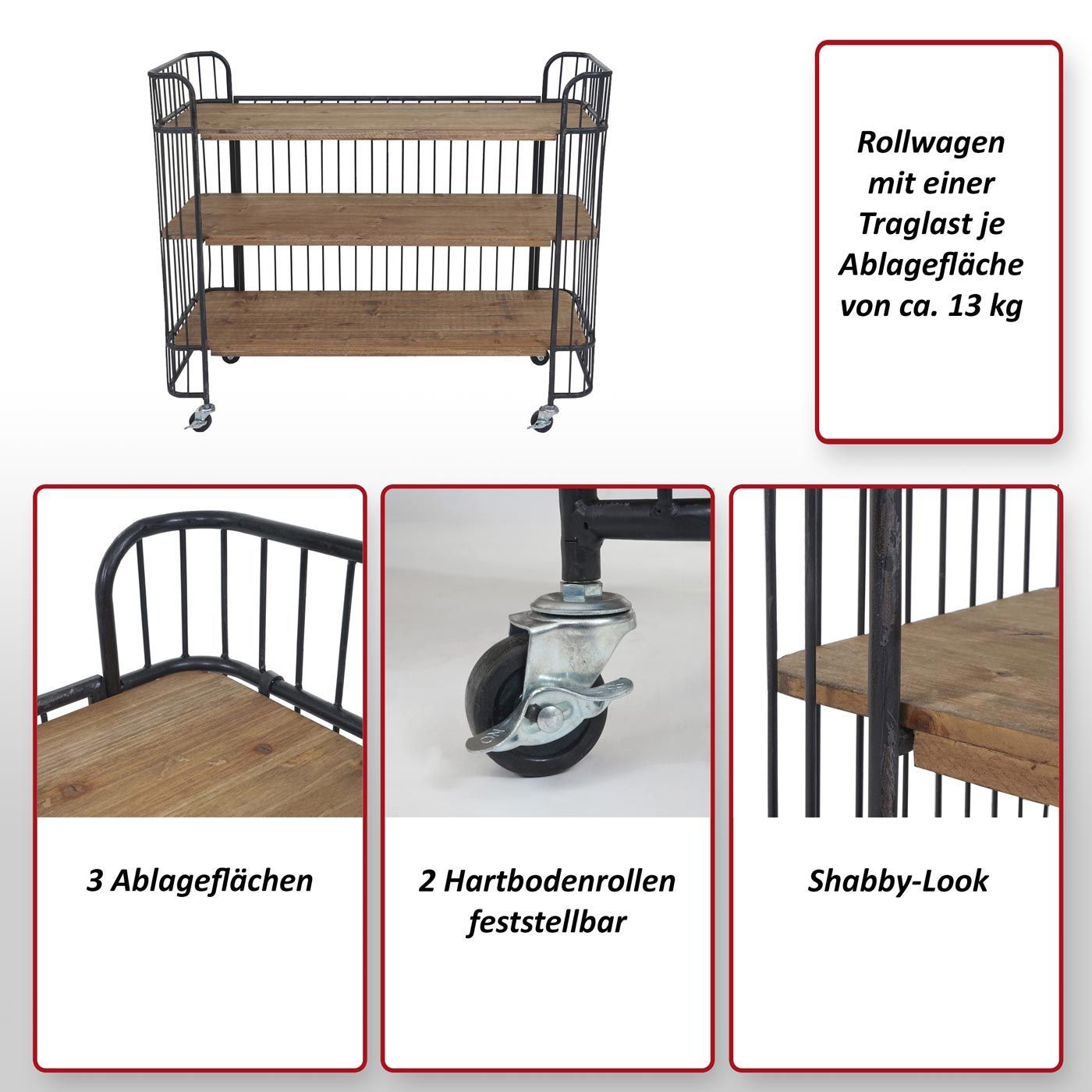 Mendler Rollwagen HWC-A43, Rollregal Servierwagen, Tanne Holz massiv Vintage 84x98x36cm