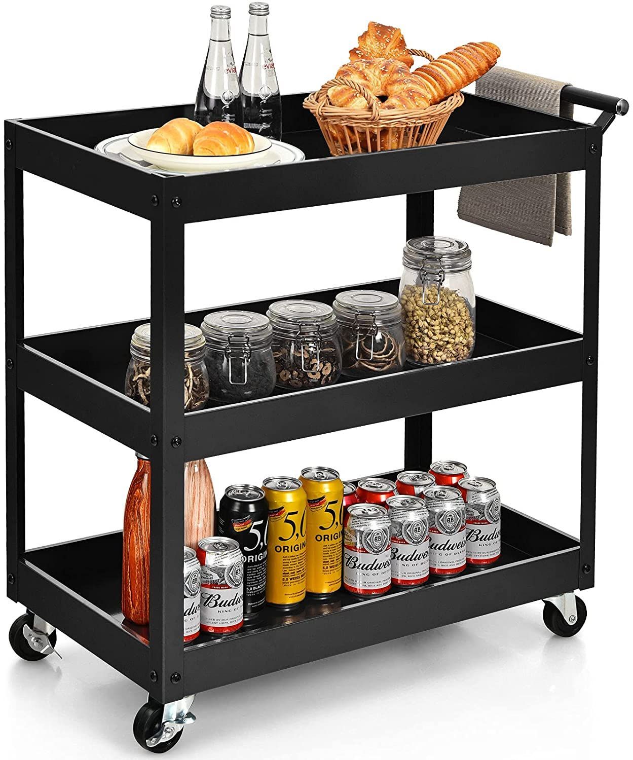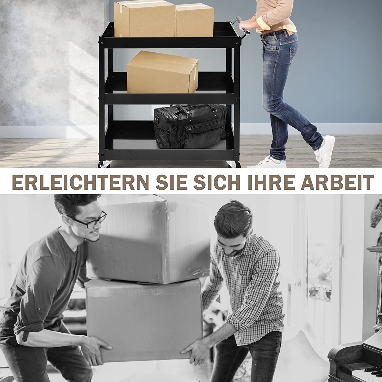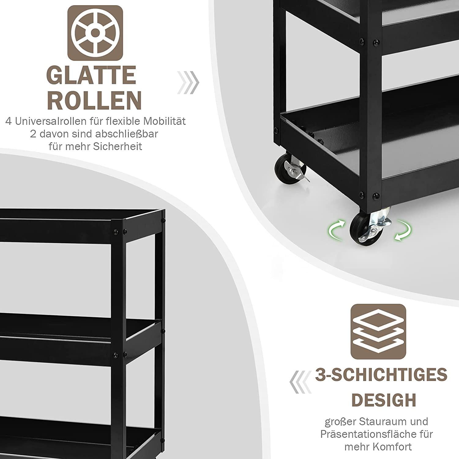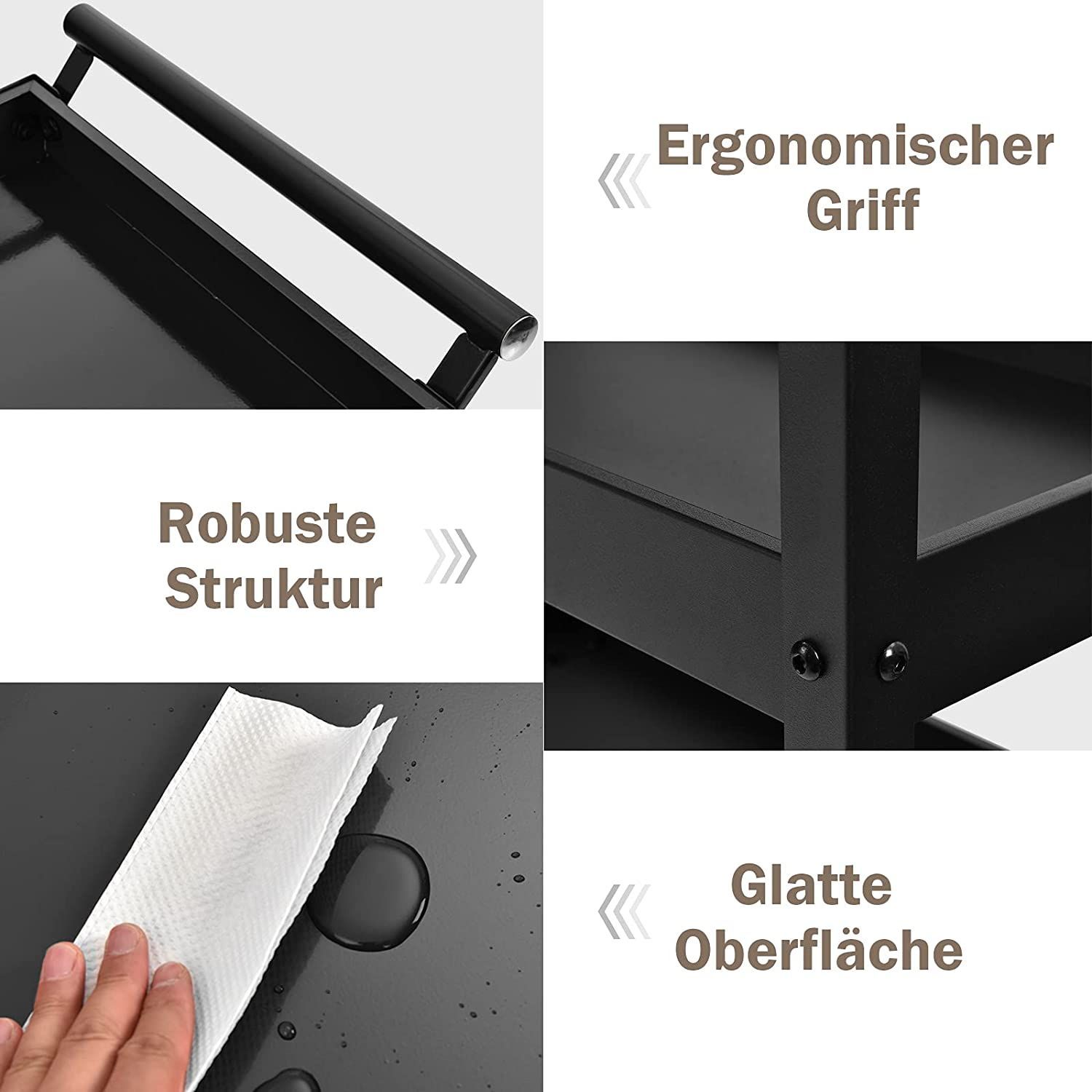 Rollwagen Küchewagen Metall, Servierwagen Allzweckwagen mit 3 Ebenen Stauraum & Griff