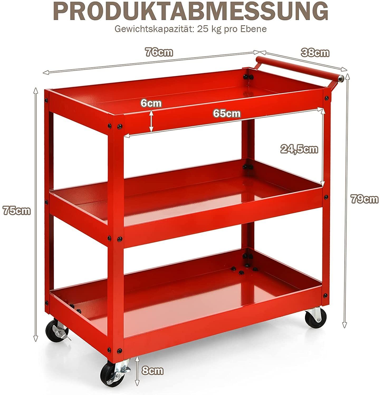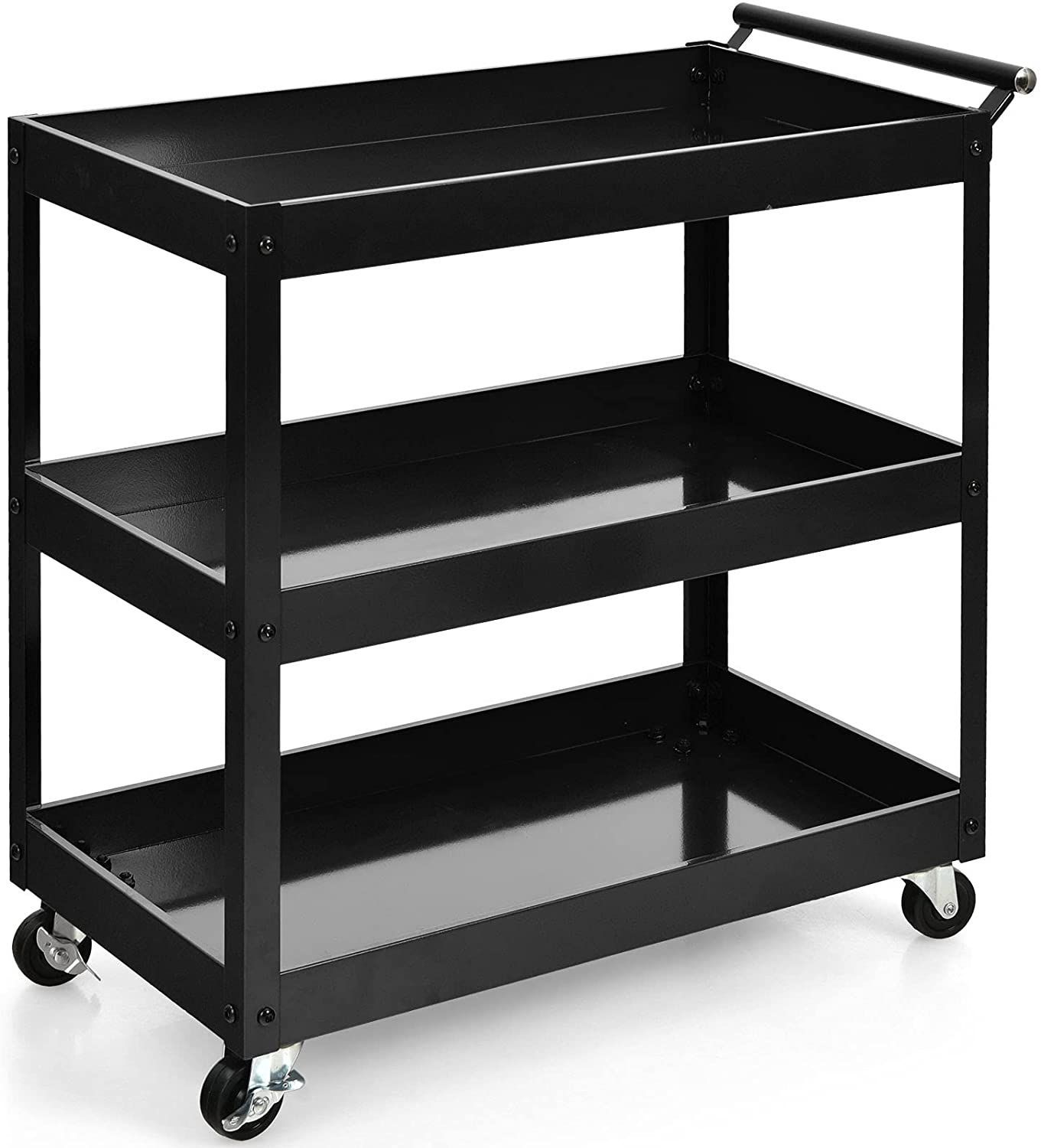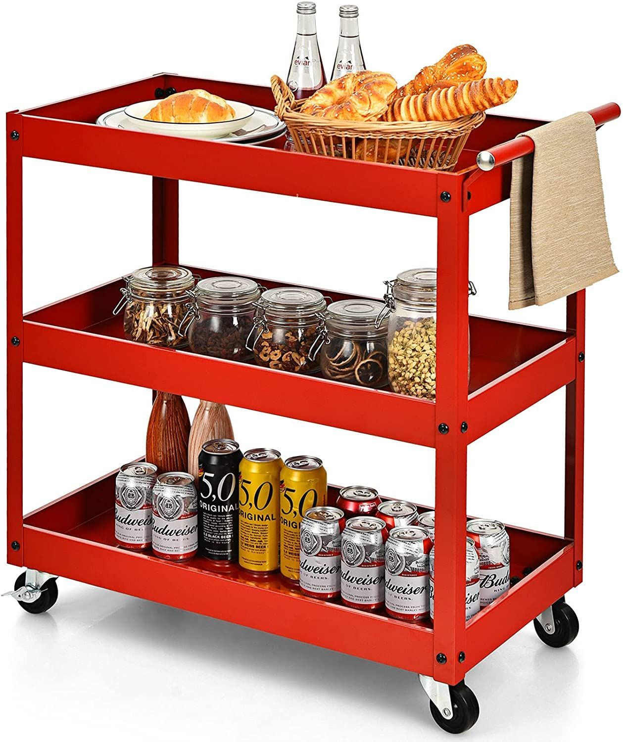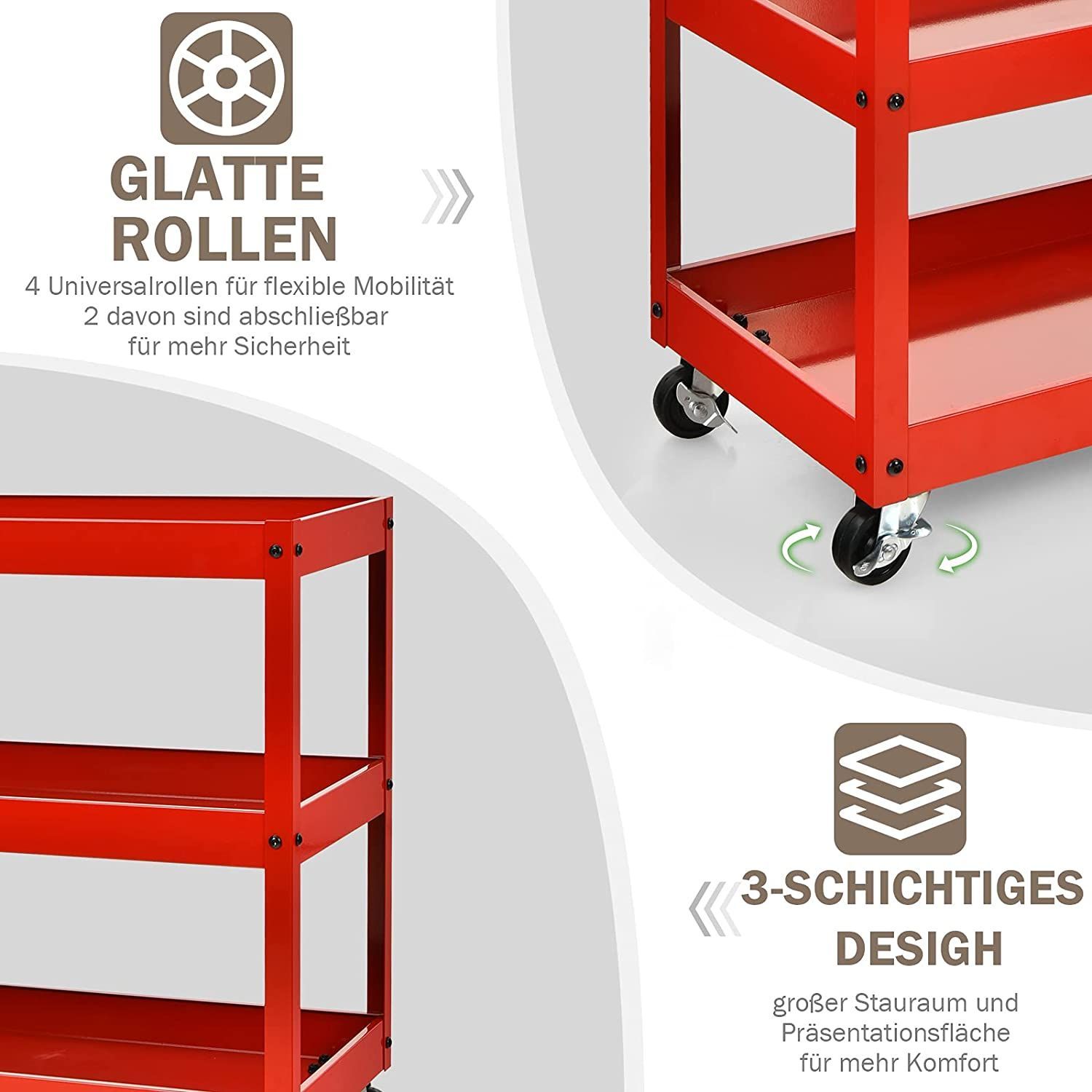 Rollwagen Küchewagen Metall, Servierwagen Allzweckwagen mit 3 Ebenen Stauraum & Griff