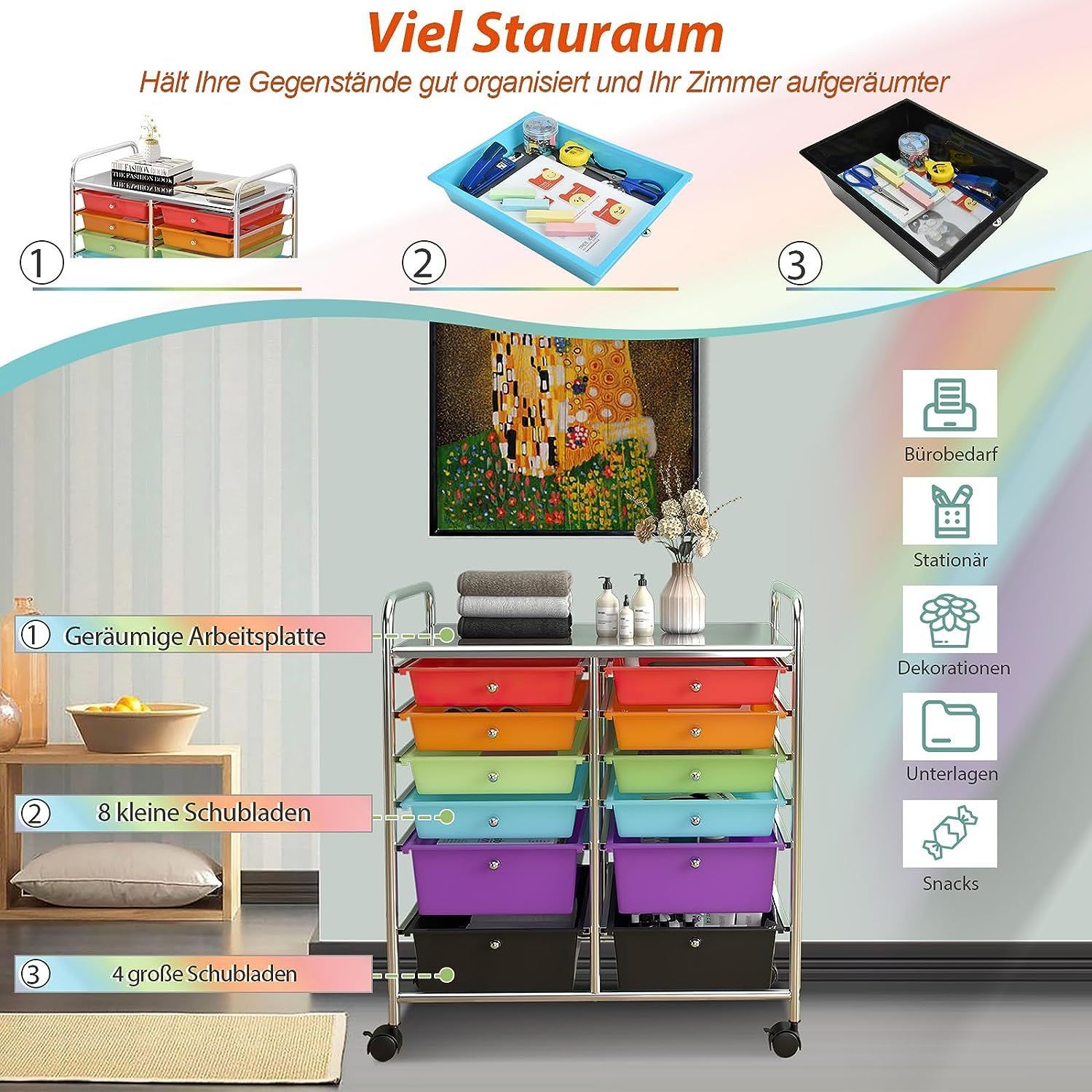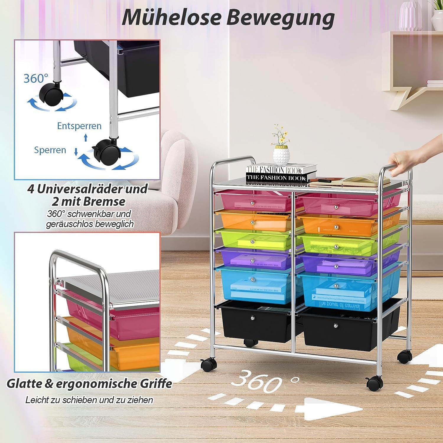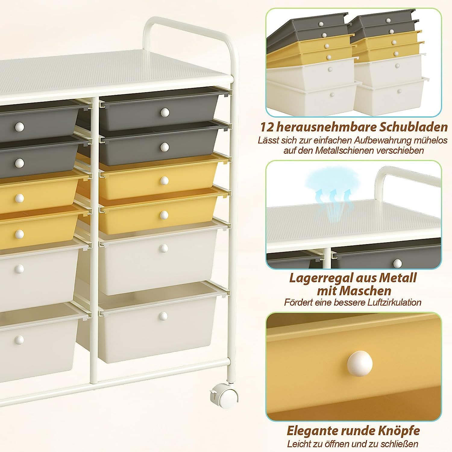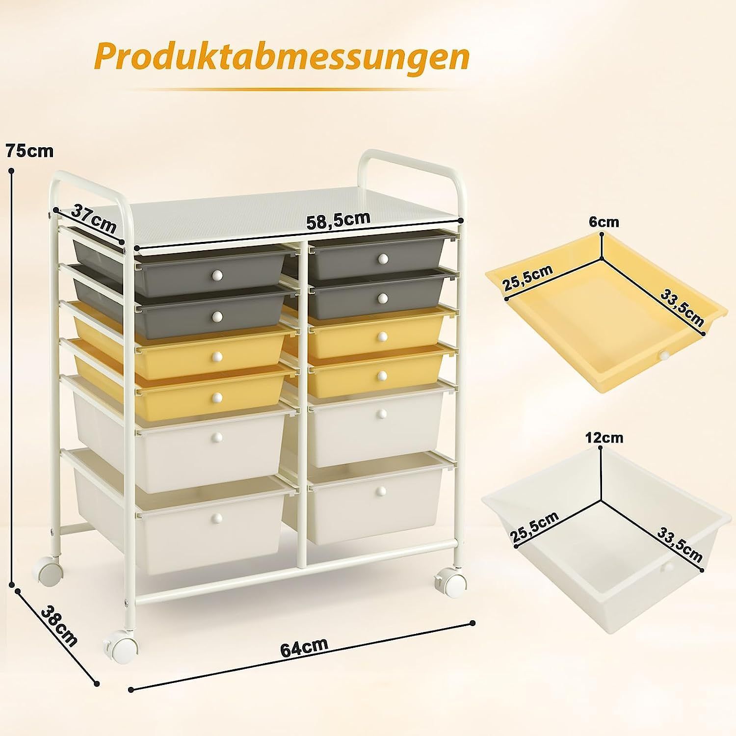 Rollwagen mit 12 stapelbaren Schubladen, Schubladenwagen Rollcontainer für Büro