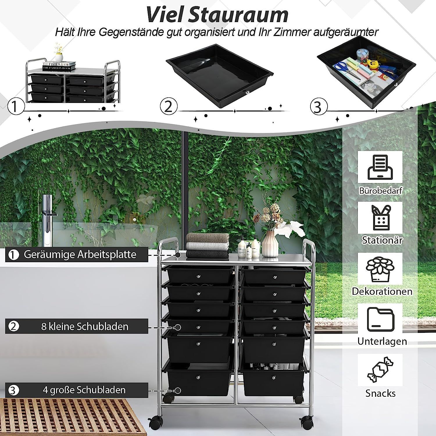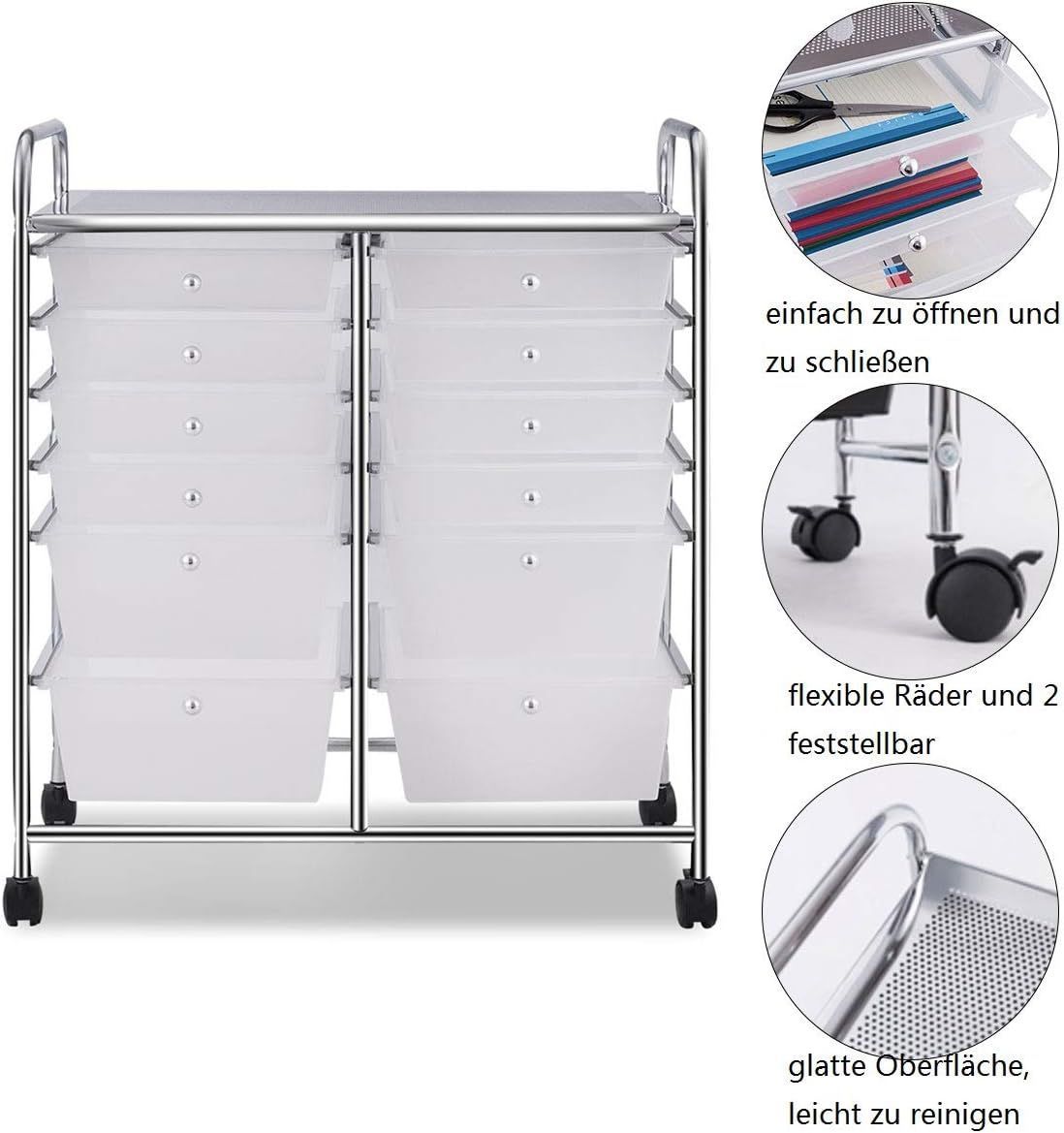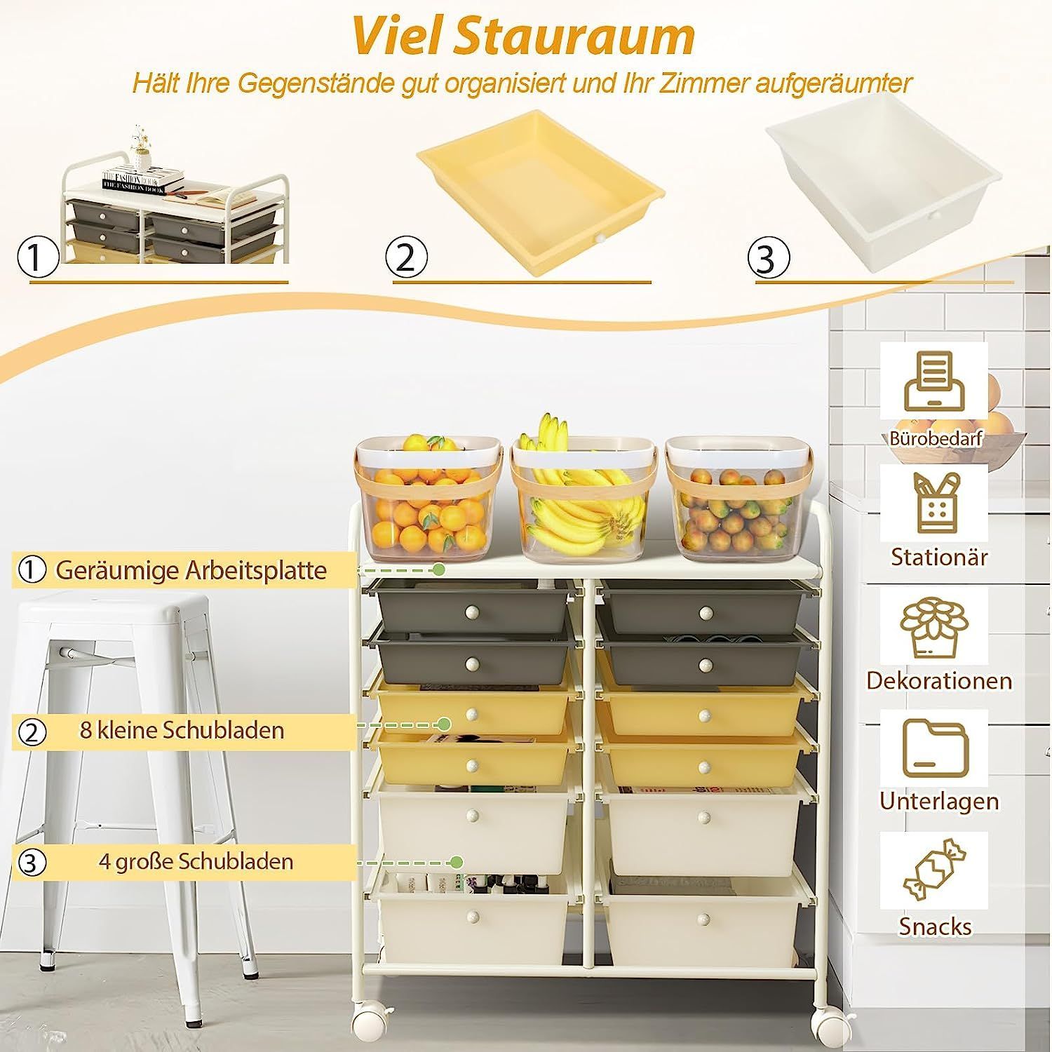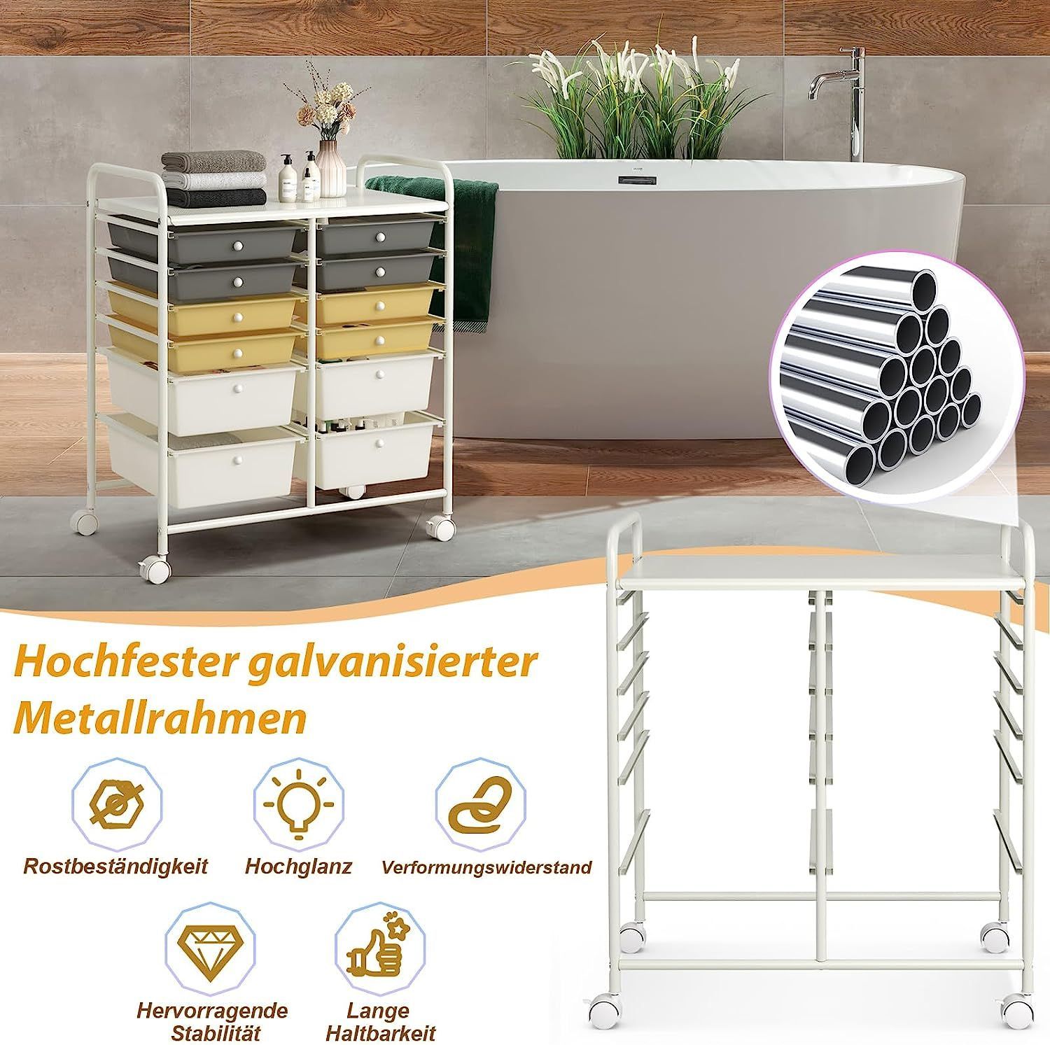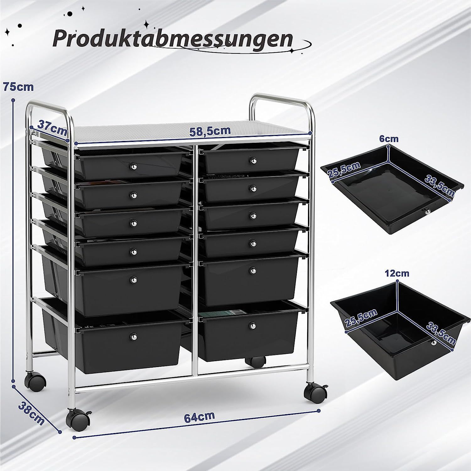 Rollwagen mit 12 stapelbaren Schubladen, Schubladenwagen Rollcontainer für Büro