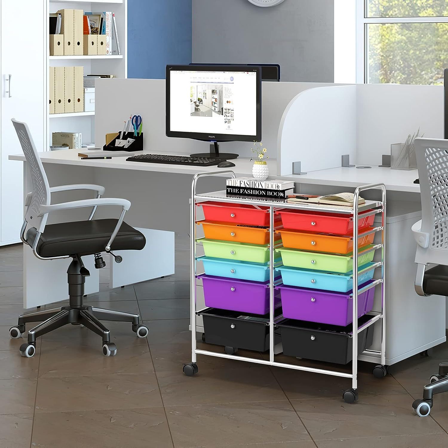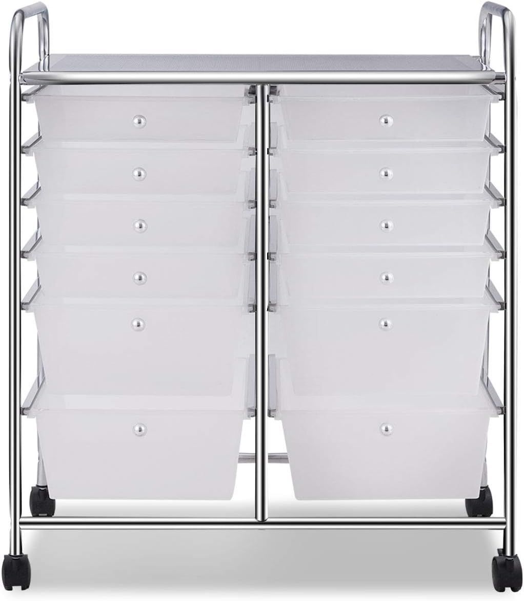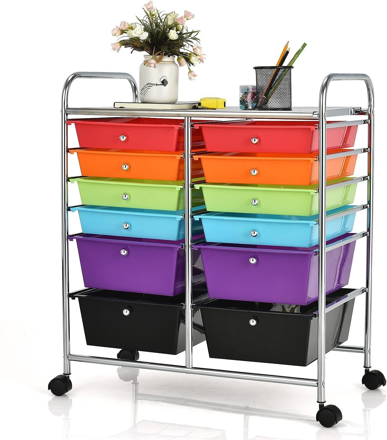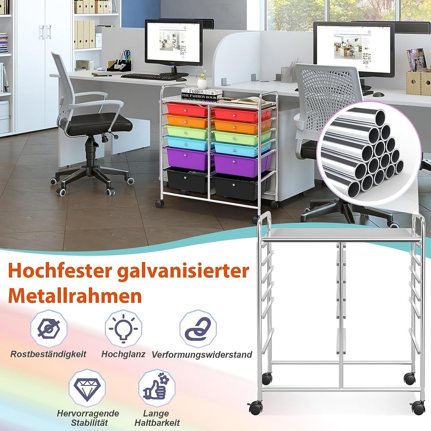 Rollwagen mit 12 stapelbaren Schubladen, Schubladenwagen Rollcontainer für Büro