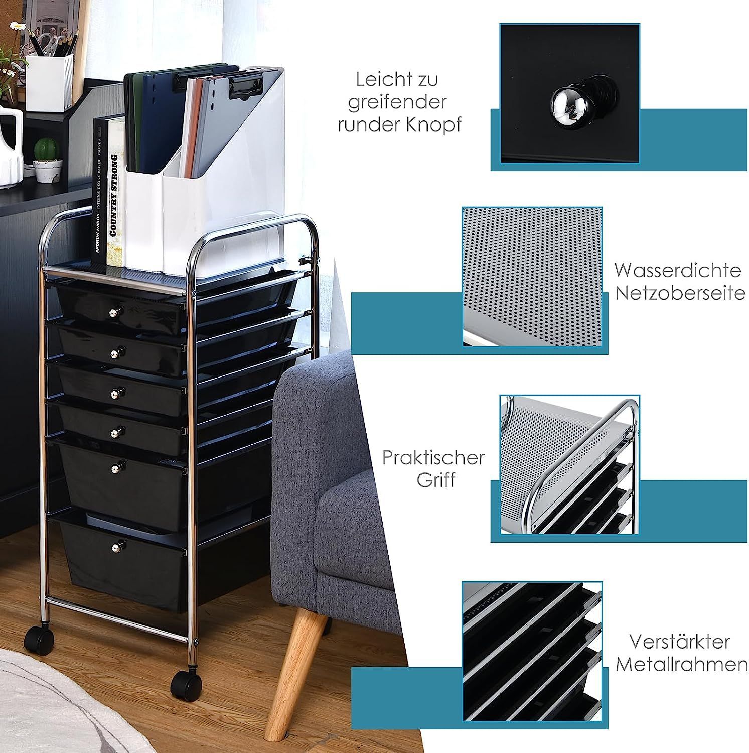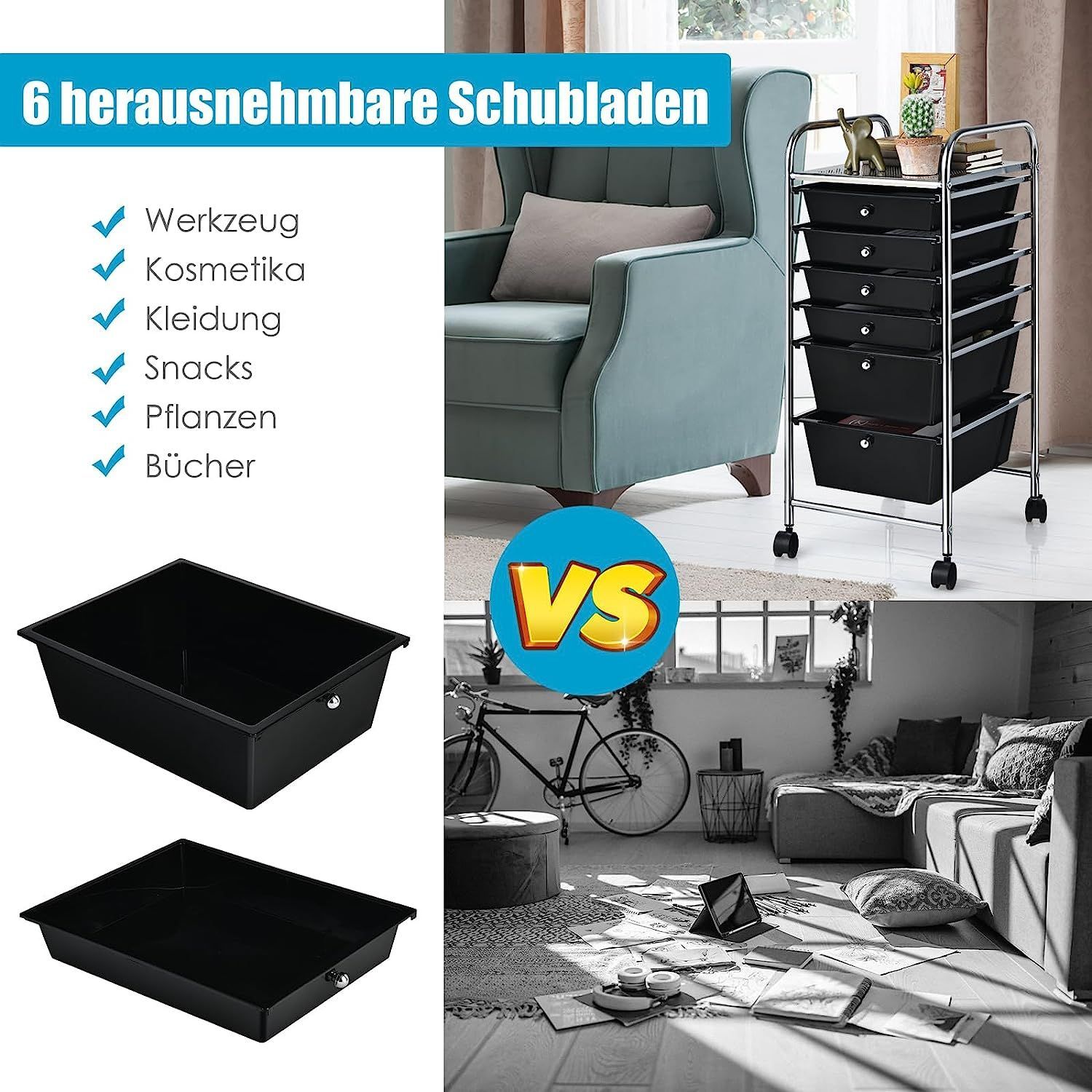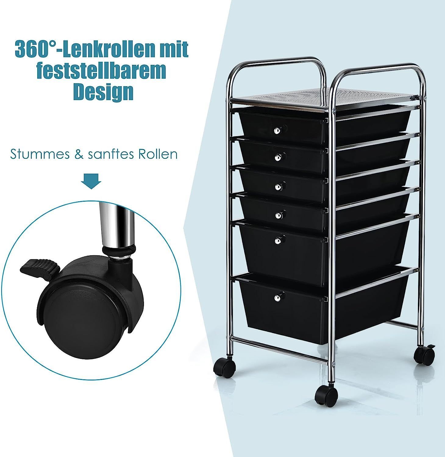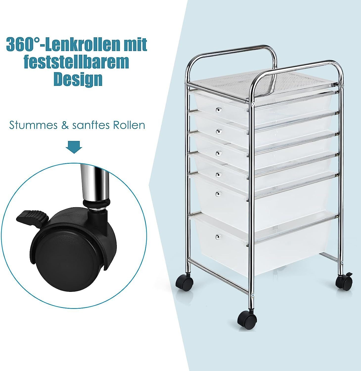 Rollwagen mit 6 stapelbaren Schubladen, Schubladenwagen Rollcontainer, Badrollwagen