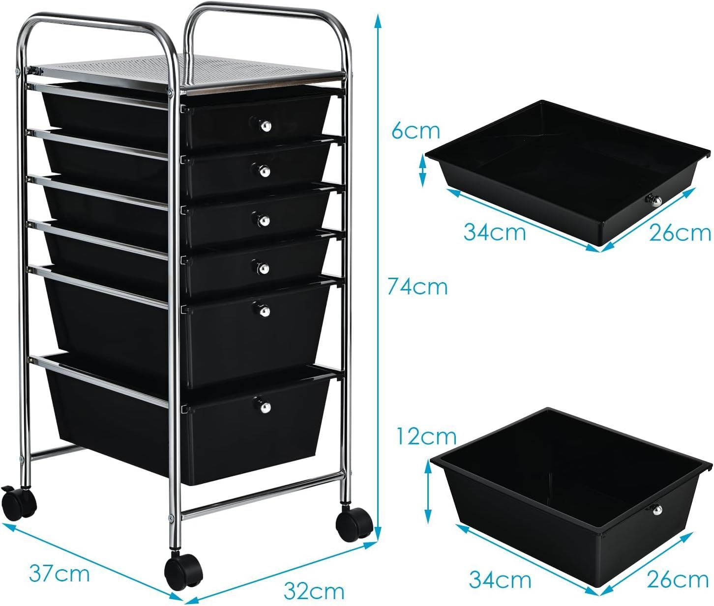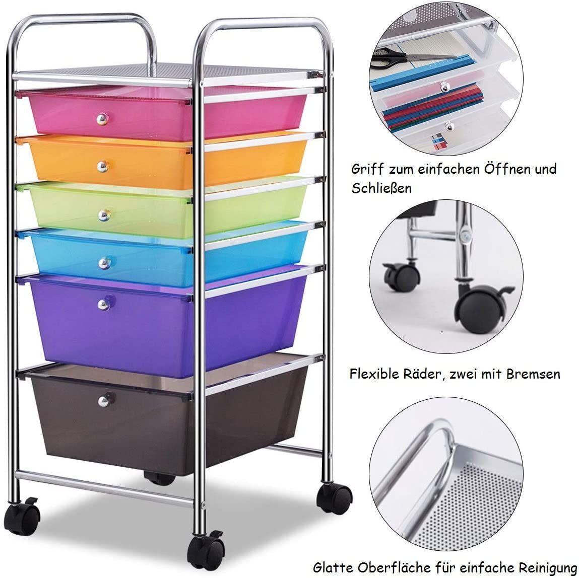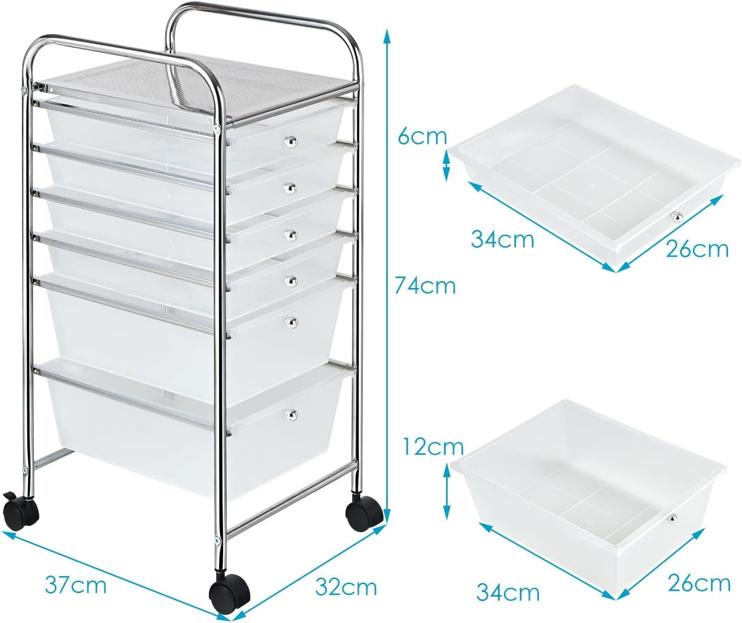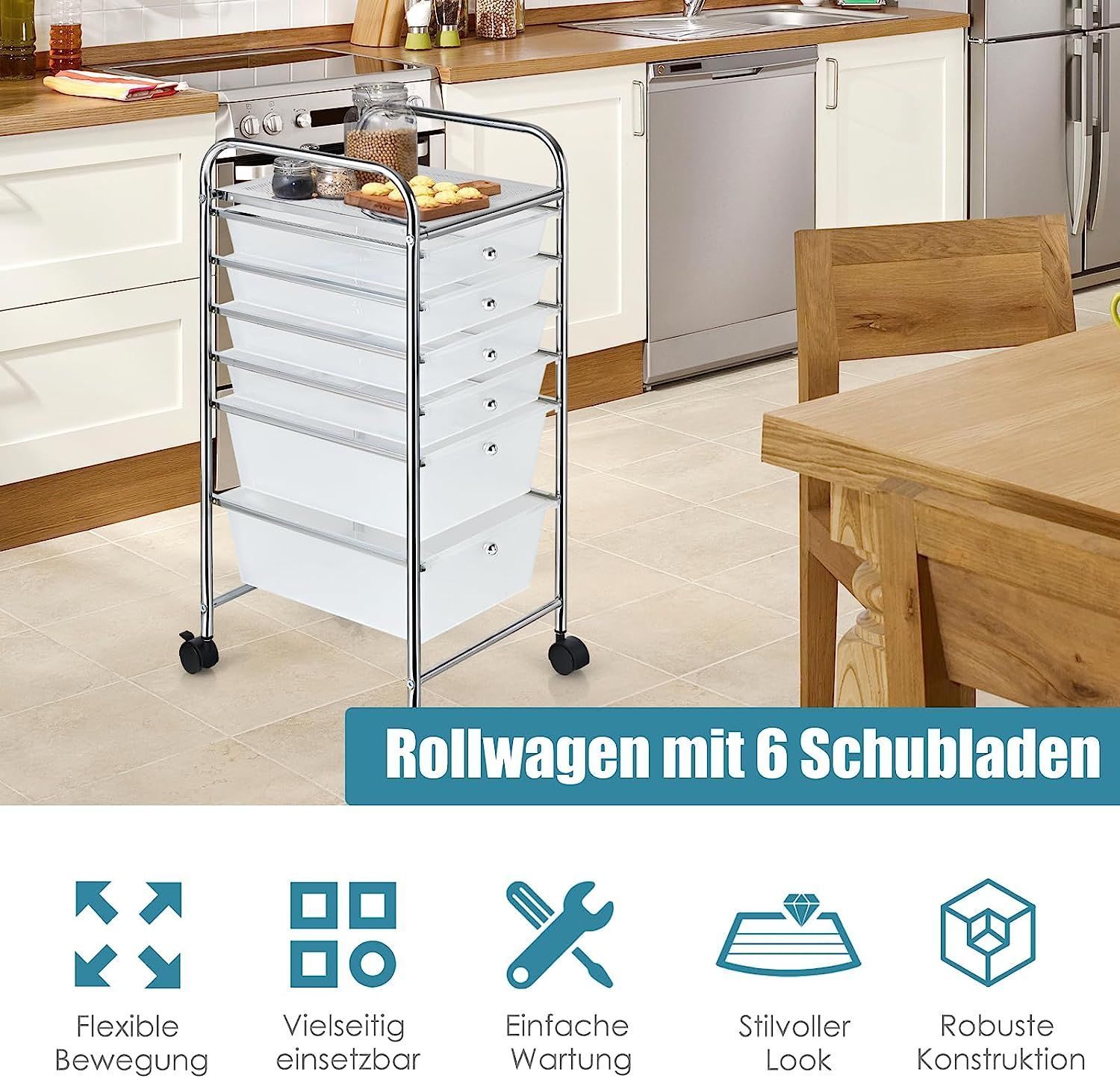 Rollwagen mit 6 stapelbaren Schubladen, Schubladenwagen Rollcontainer, Badrollwagen