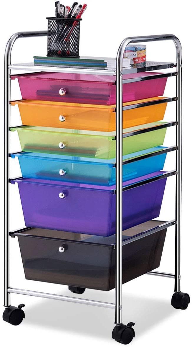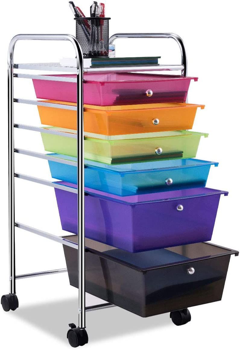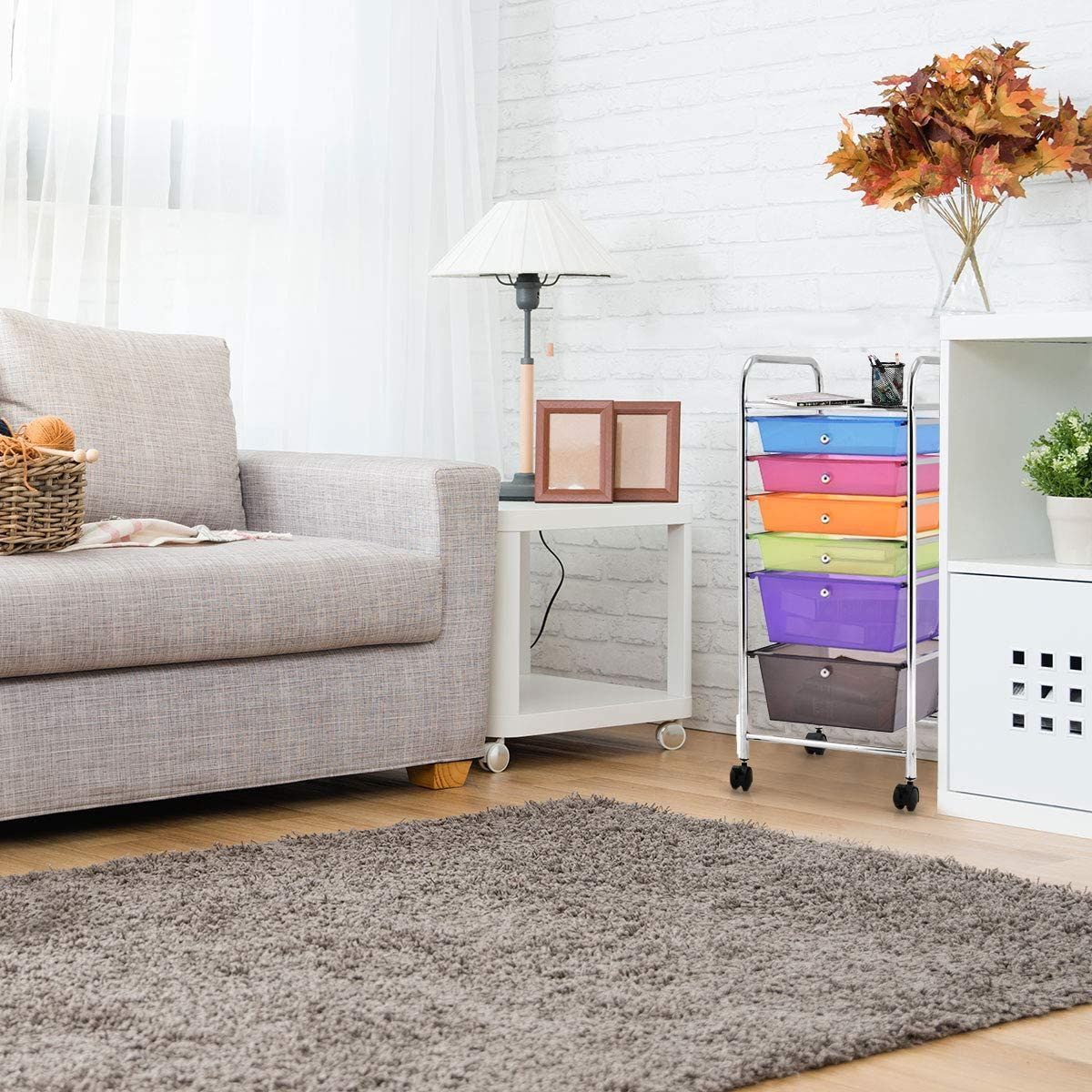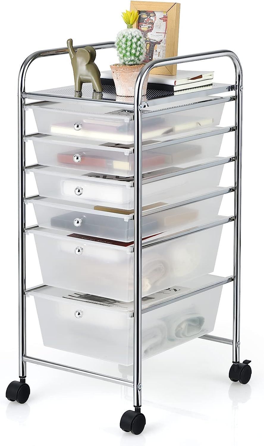 Rollwagen mit 6 stapelbaren Schubladen, Schubladenwagen Rollcontainer, Badrollwagen