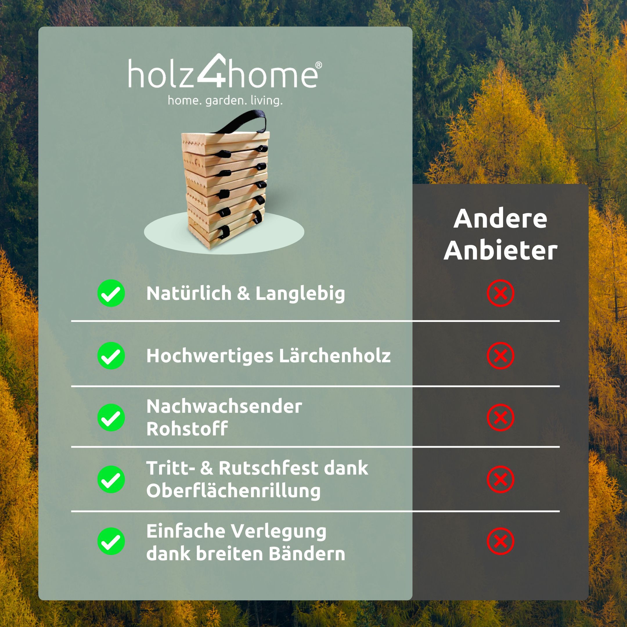 • Rollweg Gartenweg Holzdielen aus Lärche 35 cm breit