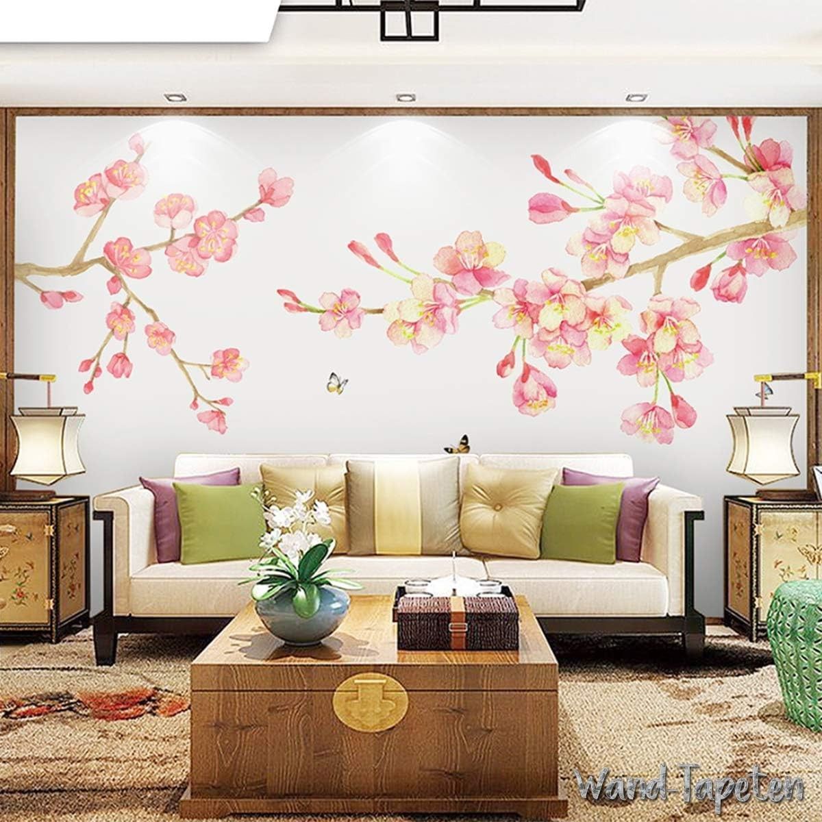 Romantische Aquarell Blumen Fototapete Landhaus Stil Wandbild Wohnzimmer 7241