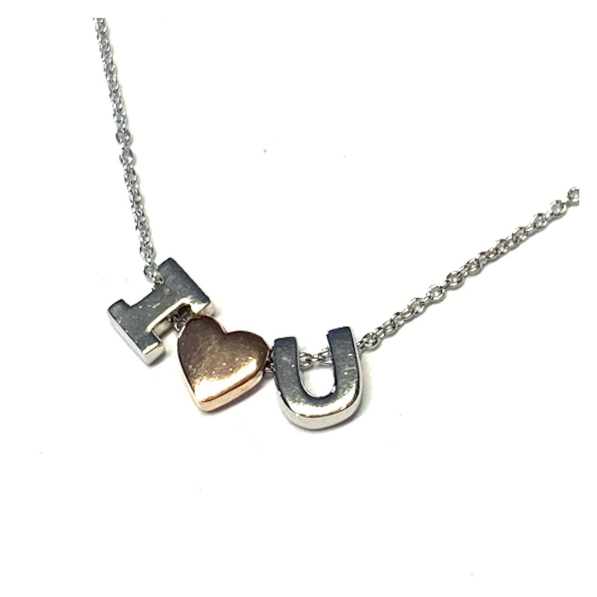 romantische Halskette 925/- Sterling Silber rhod mit rosévergoldetem Herz - Schriftzu