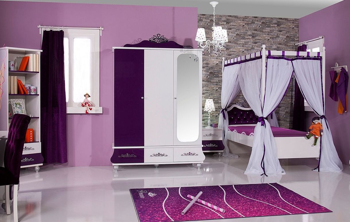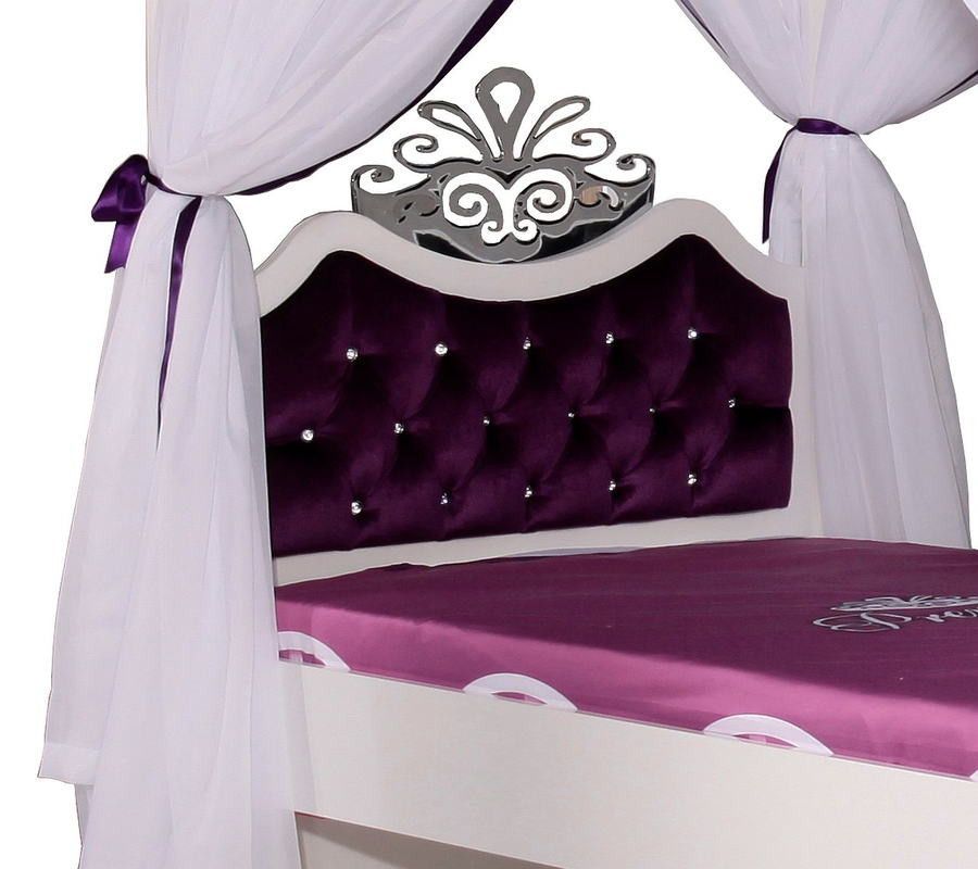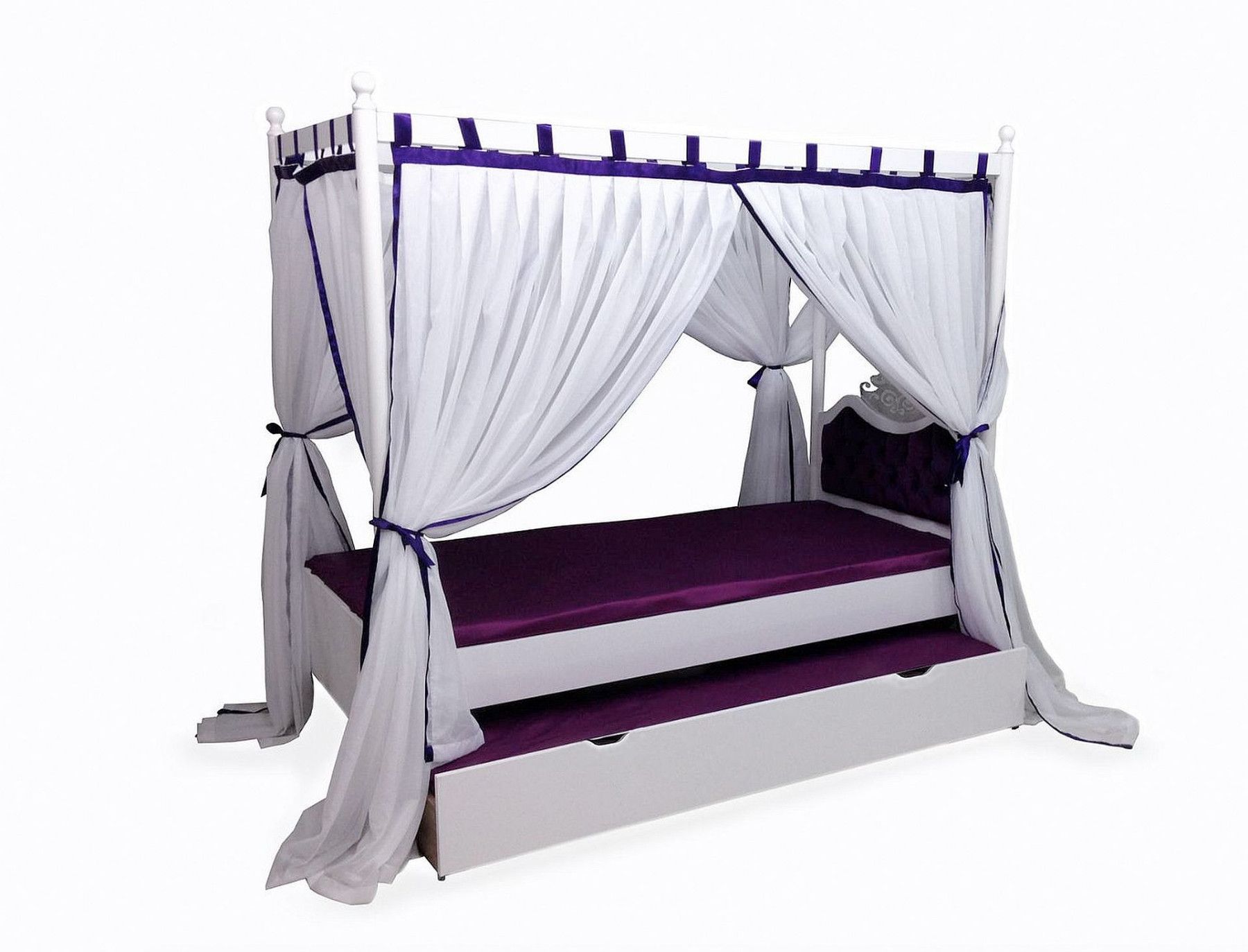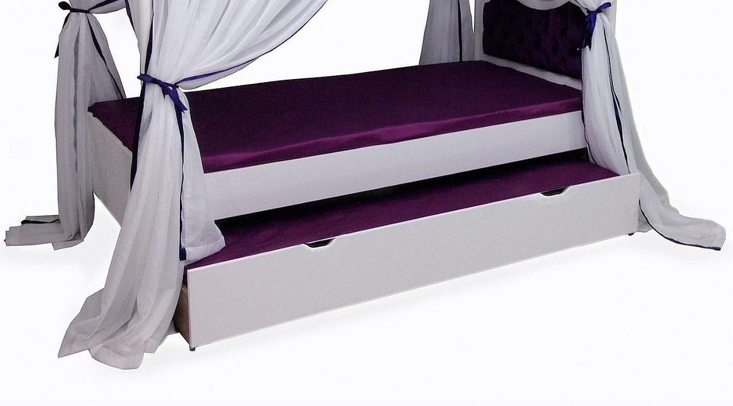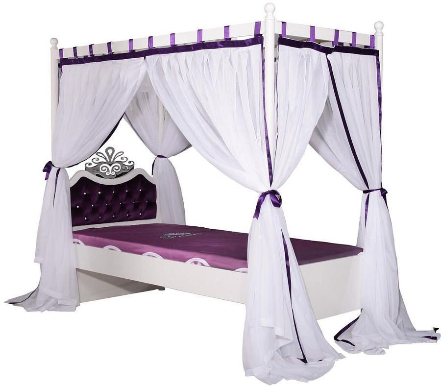 byMM Romantisches Himmelbett Anastasia 90x200 in lila mit Bettschubkasten und Vorhang