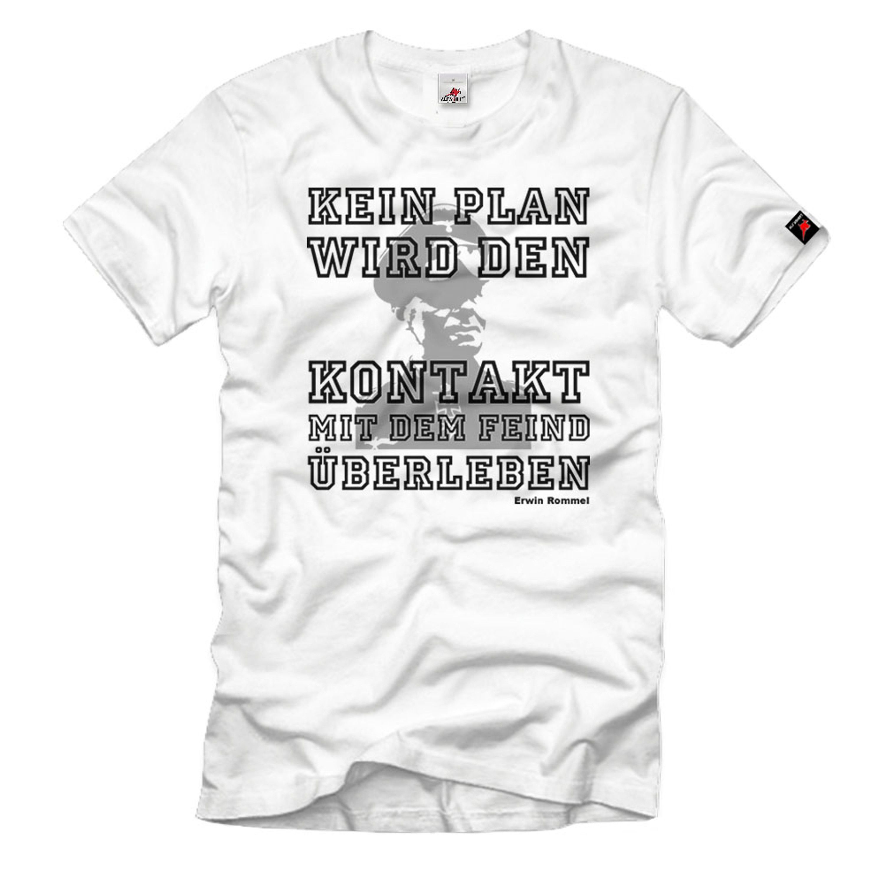 Rommel Kein Plan überlebt den Feind Kontackt Zitat Wüstenfuchs T-Shirt 888 Produktinformationen Geiles Motiv > Qualität > Ökologisch > gönn?s dir! Bei unseren Textilien legen wir höchsten Wert auf ökologische qualitative und soziale Standard in der Herstellung. Unsere Shirts und Druckverfahren sind