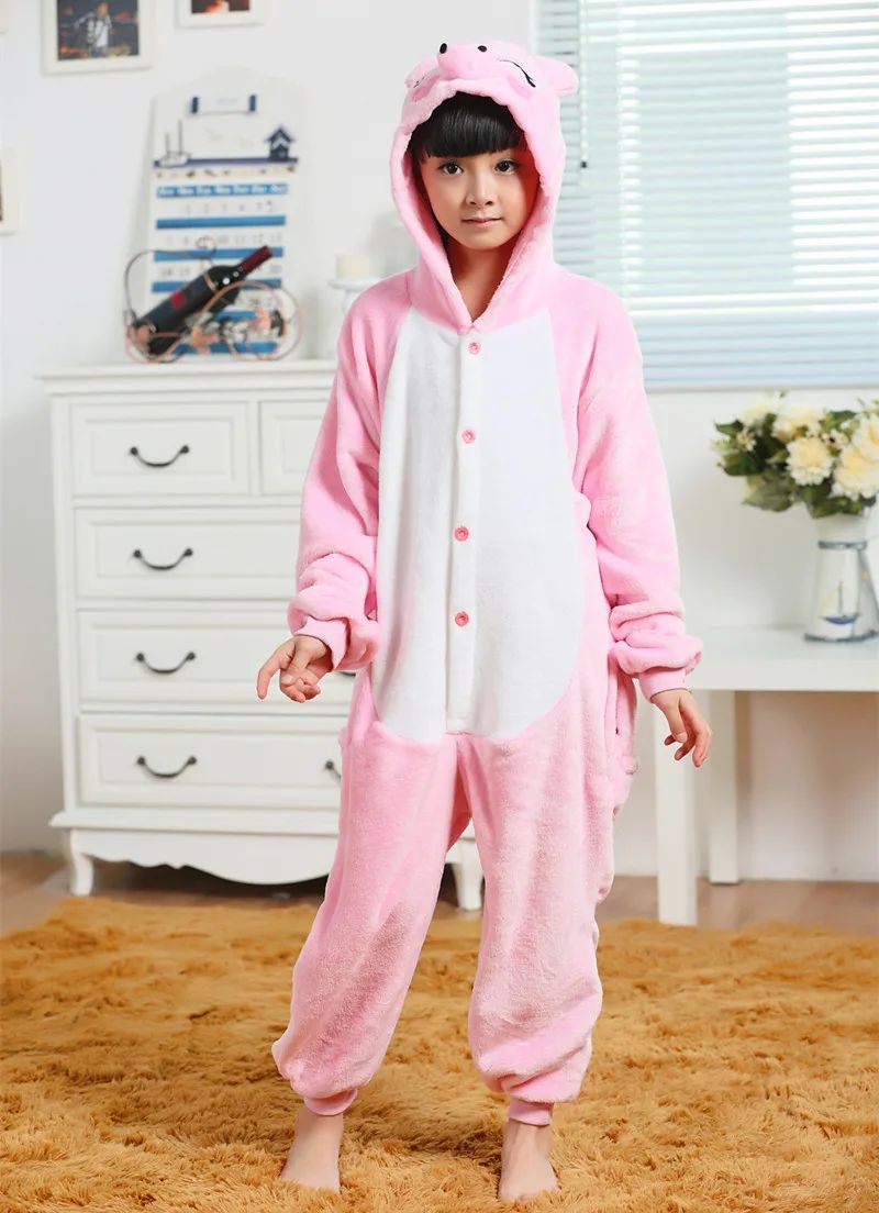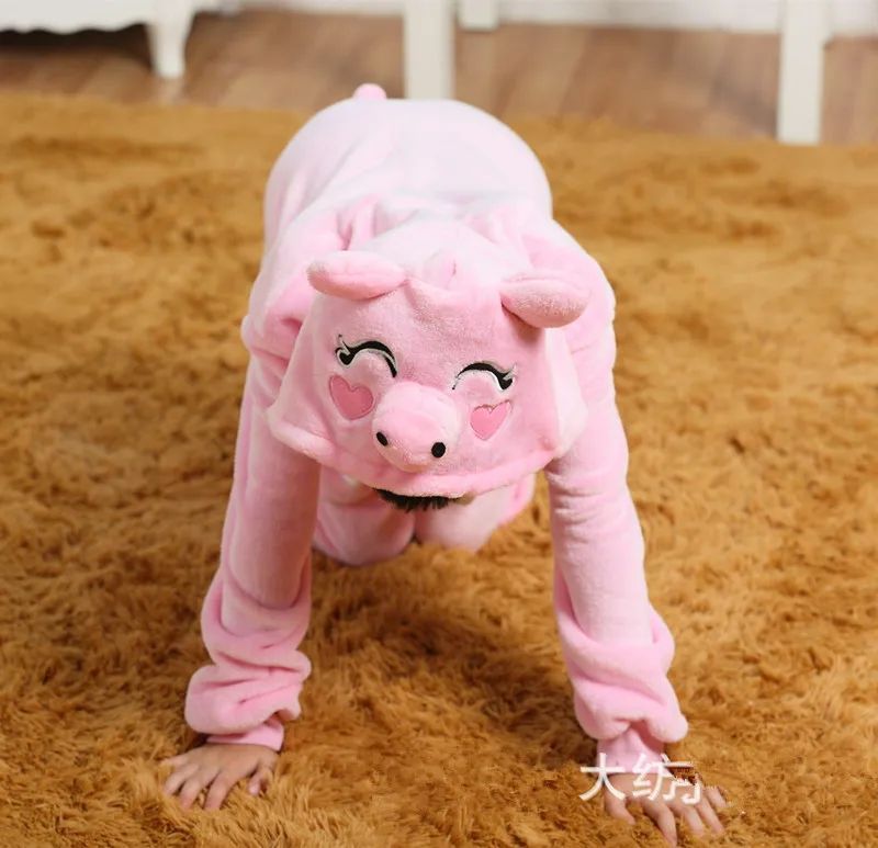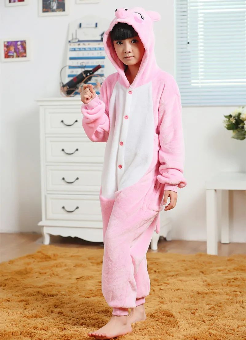 Rosa Schwein Onesie Kinder Tier Kigurumi Cosplay Pyjamas Halloween Karneval Plusch