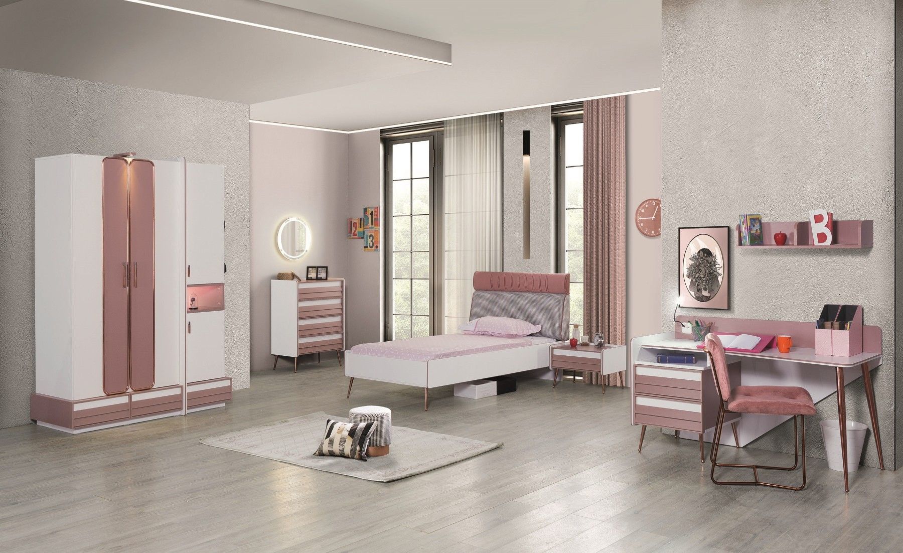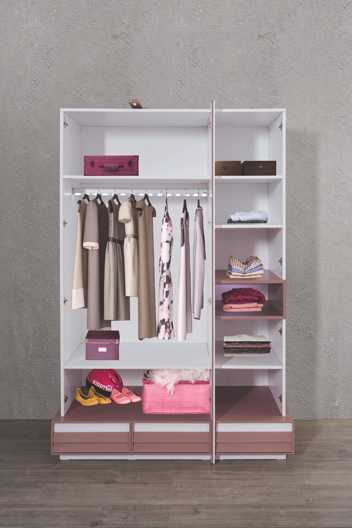 Rose Kleiderschrank für Kinder in Rosa / Weiß